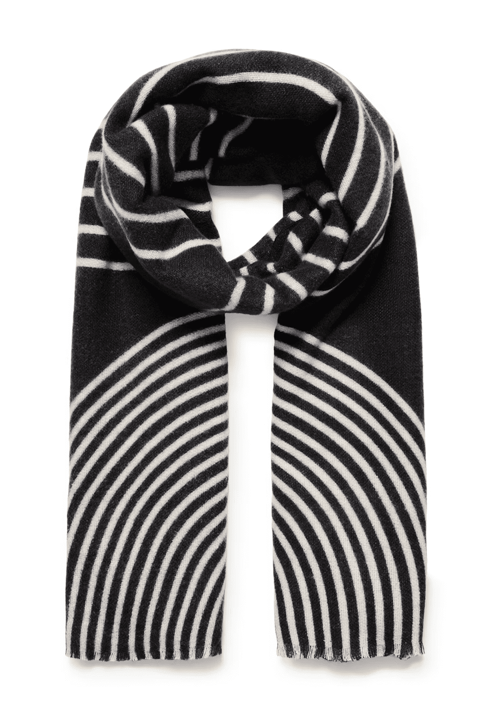Supersoft & lightweight monochrome scarf. You can’t go wrong with black & white and this one has a funky swirl stripe design too!