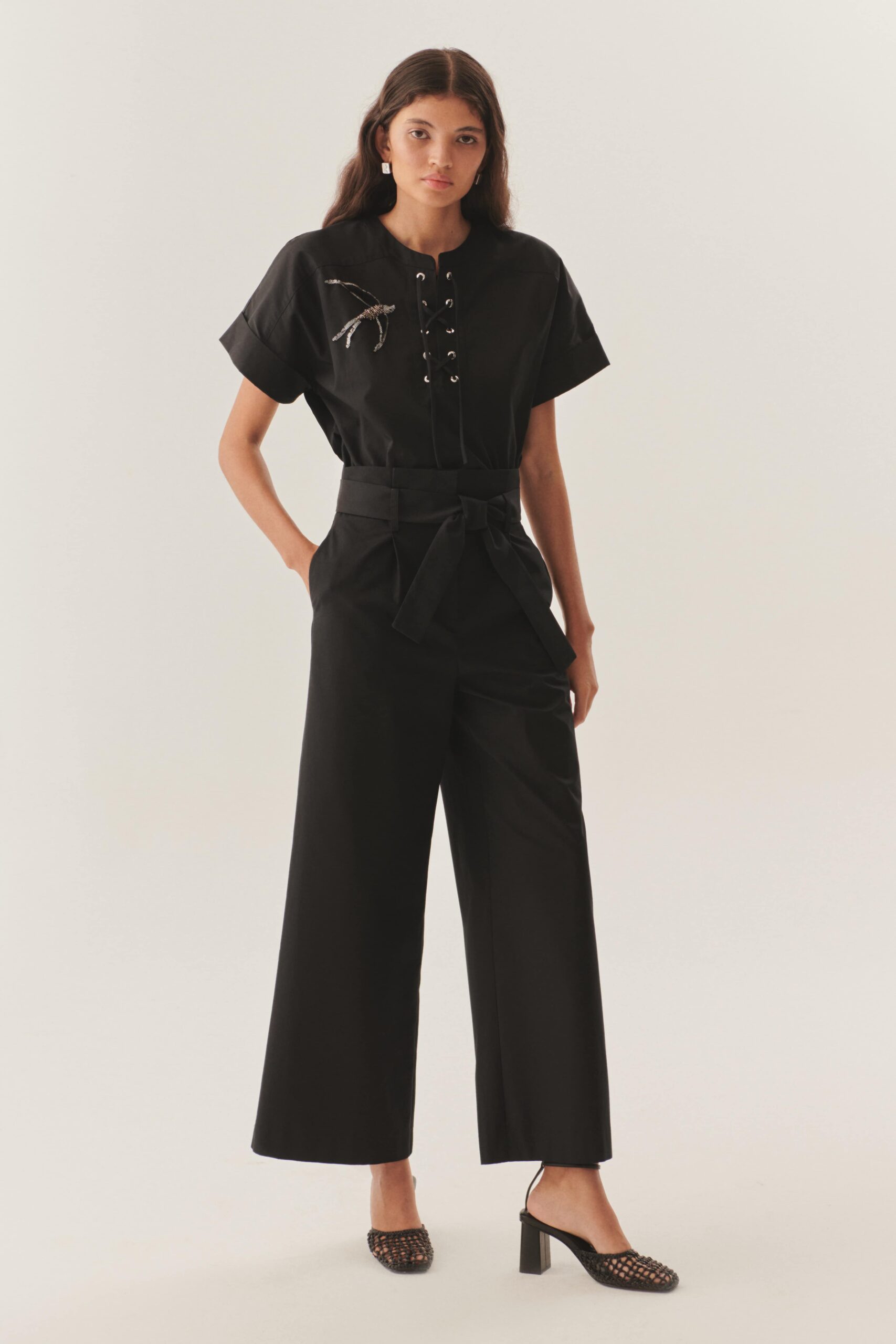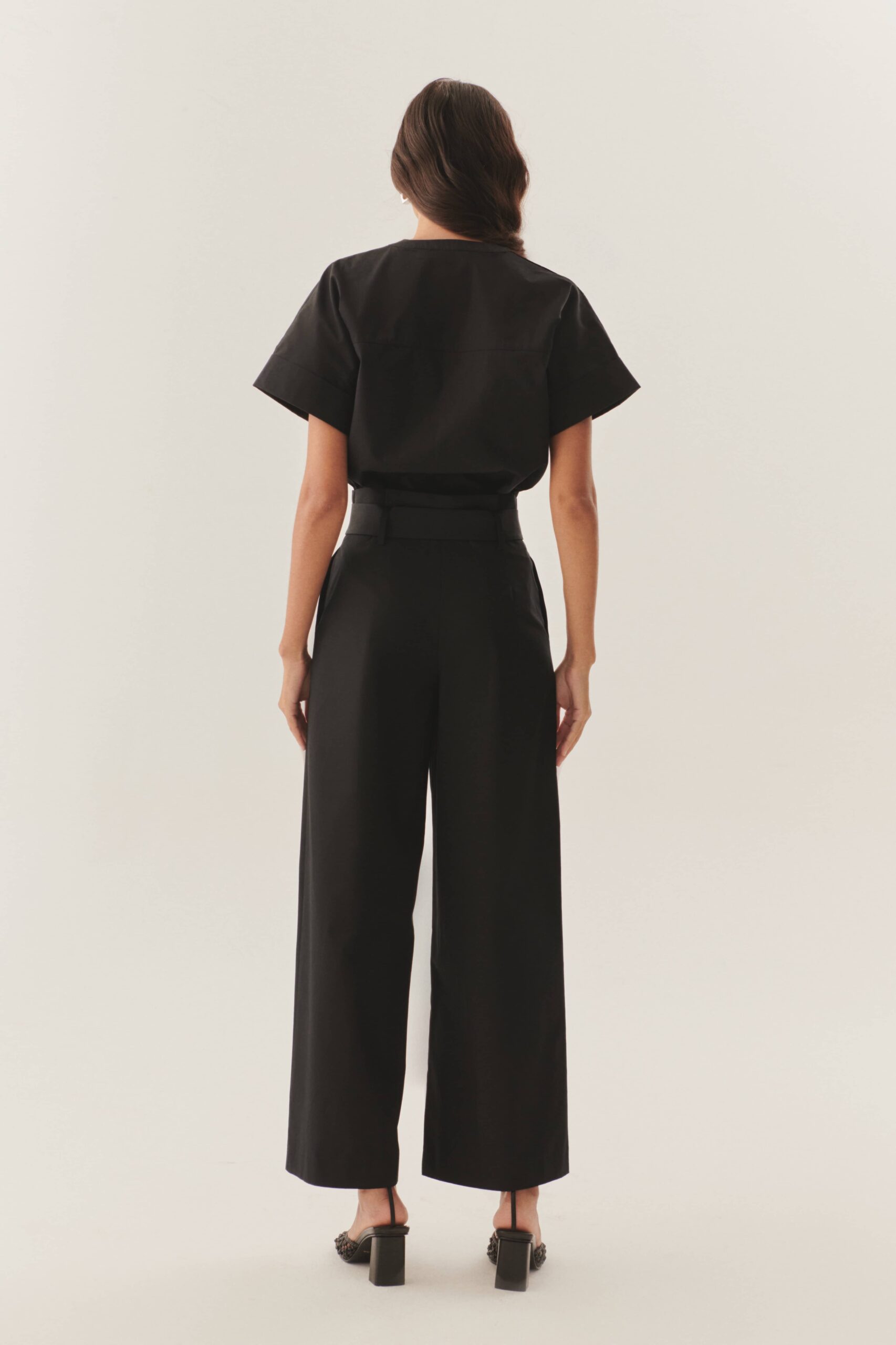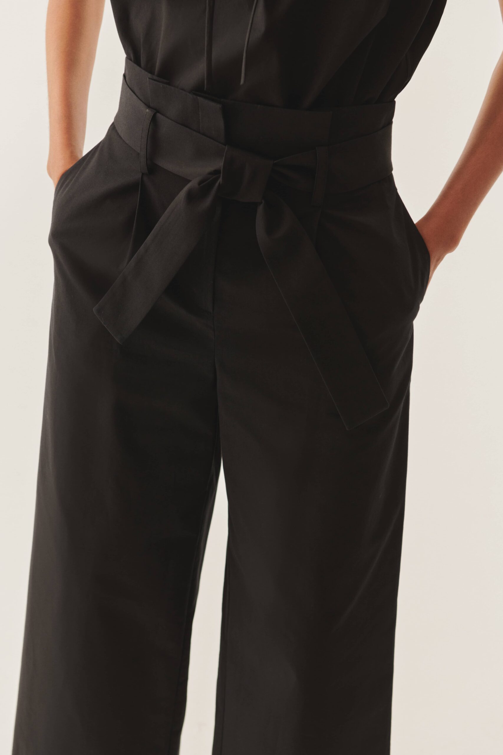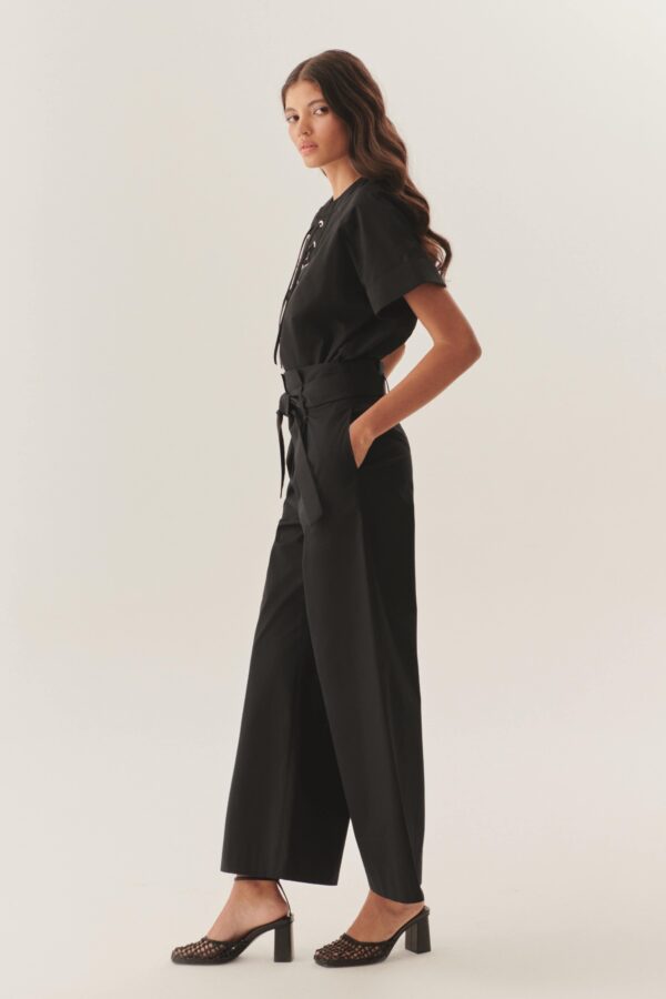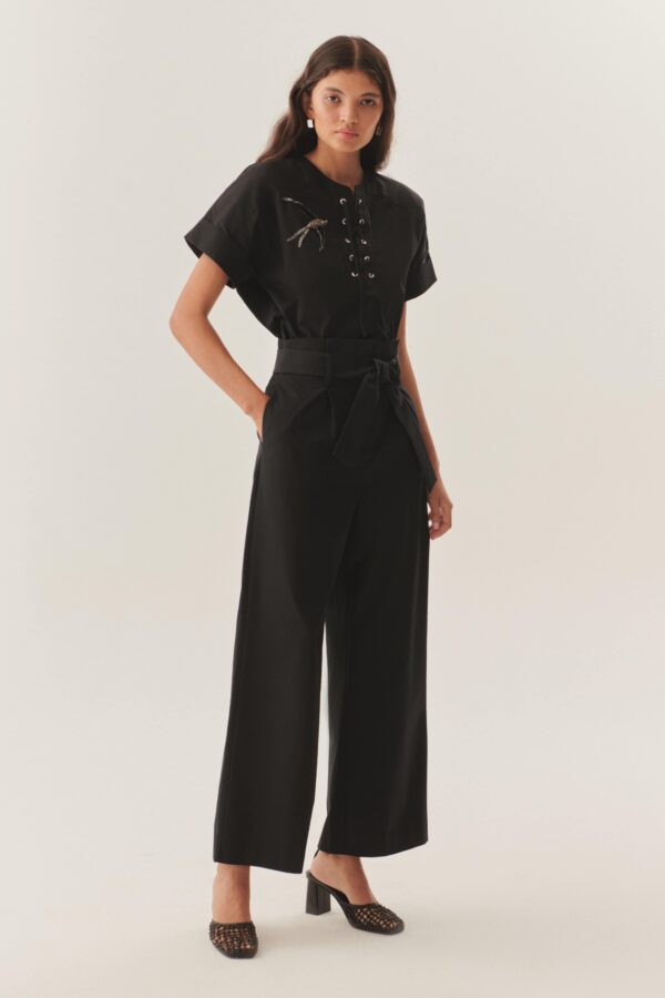 This high waist black pant with belt and pockets combines style with functionality. A modern piece it’s perfect for both professional and everyday wear. Adds a refined touch to your style.
