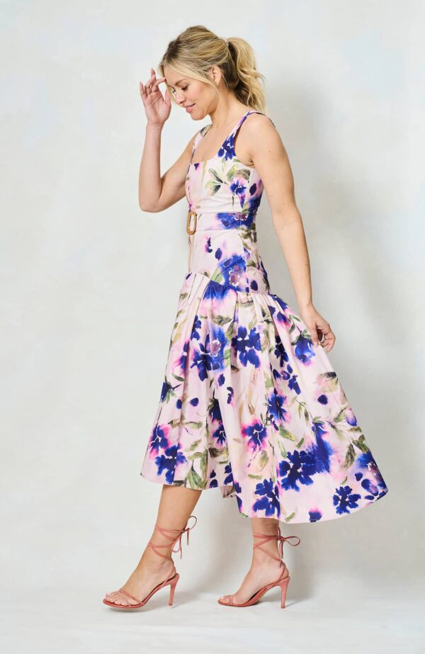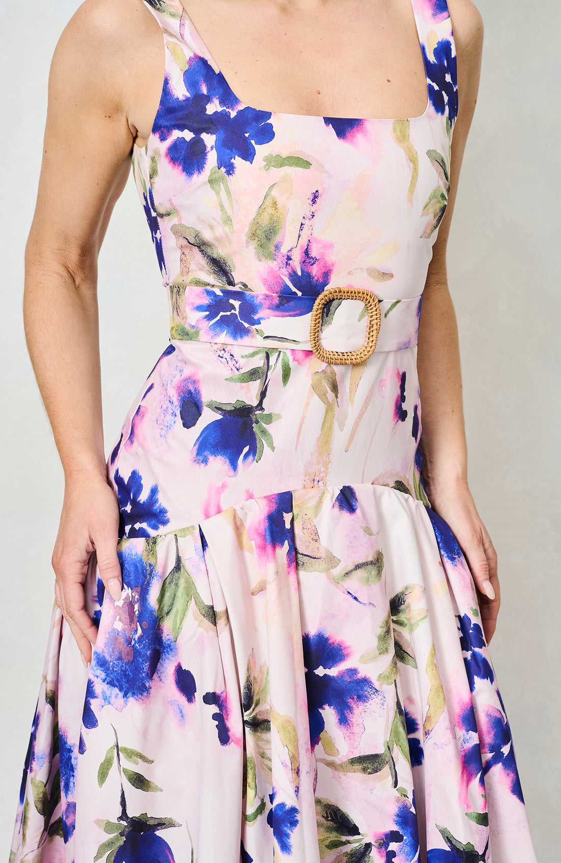 Introducing our new go-to summer silhouette, and a dress we’ll be returning to time and time again this season, The Lavinia is a drop waist midaxi style with a beautiful, floral, hand-painted print. With a chic square neckline, waist-cinching belt, and a full, waterfall skirt, she’s a dream come true for race day season and those all-important weddings!