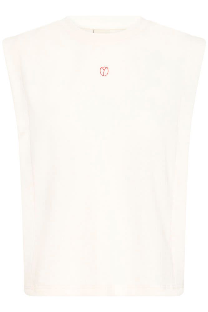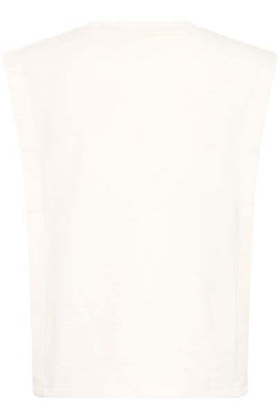 A round neck knitted top in off-white with flower logo on the chest. This top features colourful stripey panels down the sides. The underarm is relaxed making this a very comfortable top to wear in the warmer weather. It also has a lovely stretch in the material. Wear with matching Libella Stripe Trousers.