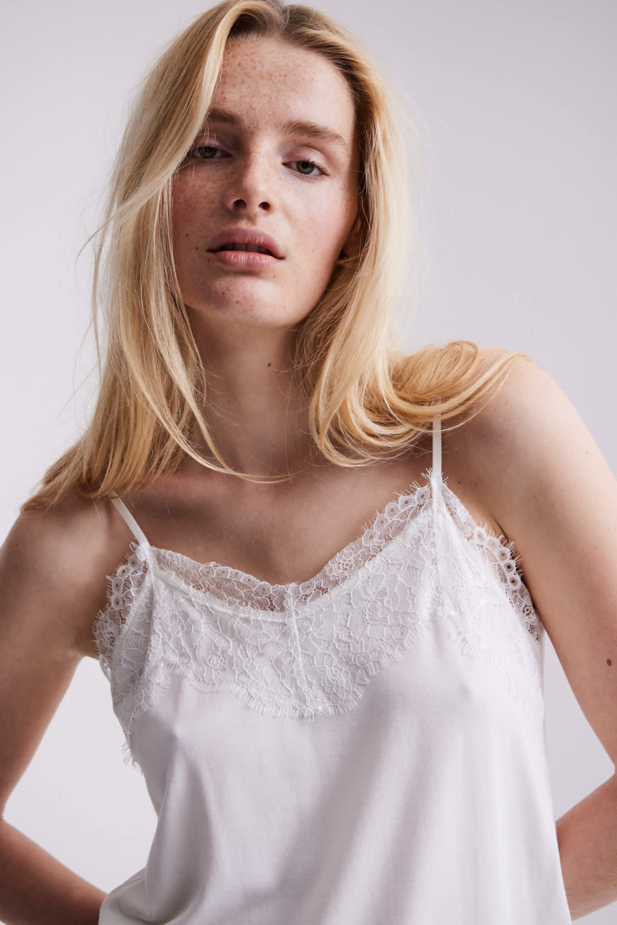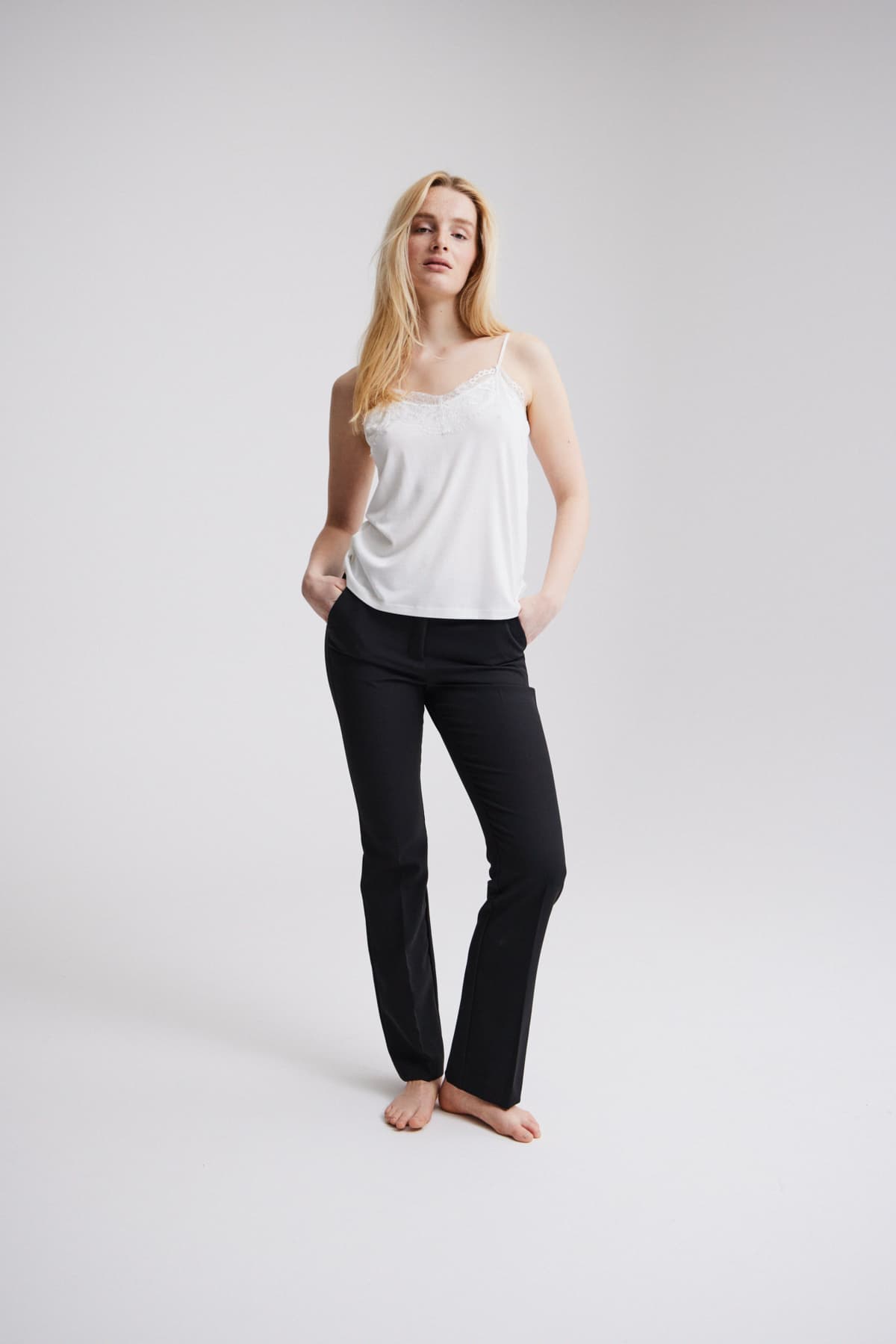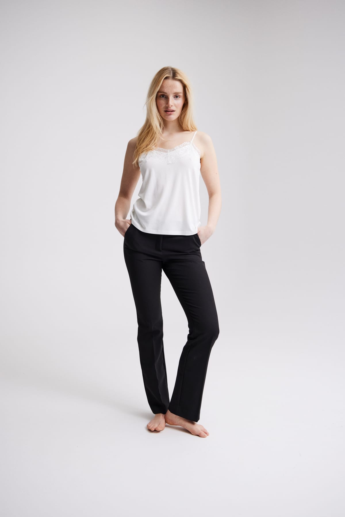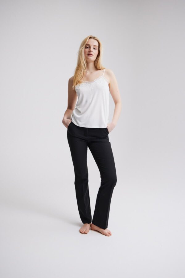 Feminine and pretty, this ICHI camisole in has adjustable thin spaghetti straps and is just the ticket a layered look. It has a delicate lace trim, v neckline and is gently fitting in soft Jersey stretch fabric.
