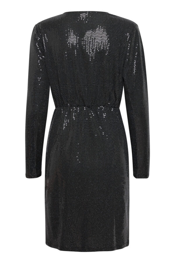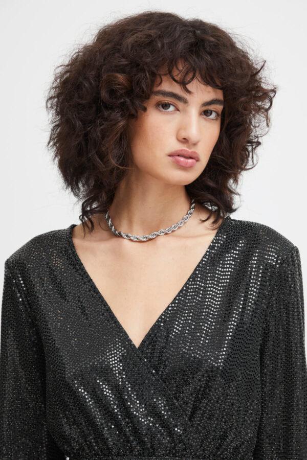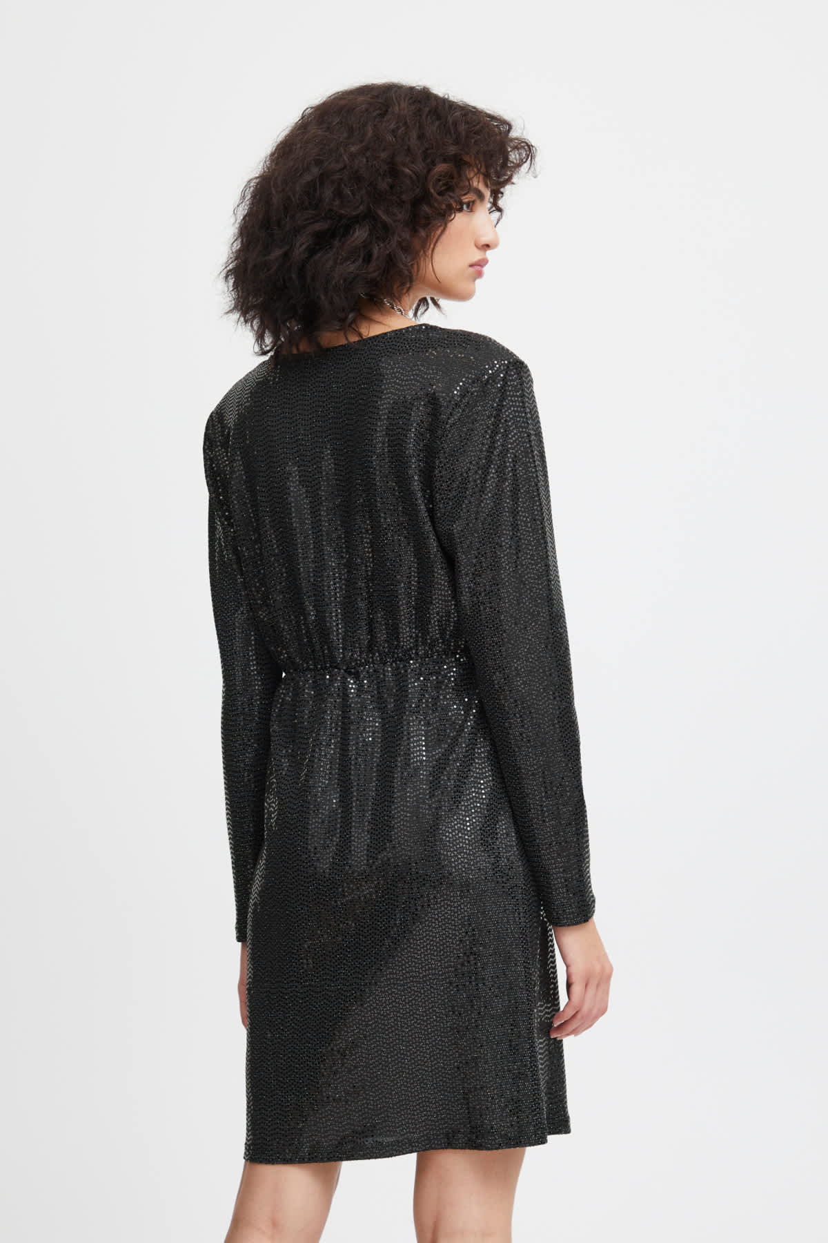 The perfect party season dress for this Winter. This stunning black metallic dress is all you will need. A bodycon wrap shape is ideal for Christmas parties or nights out. Just add some boots or heels to complete the look. Elasticated at the waist.