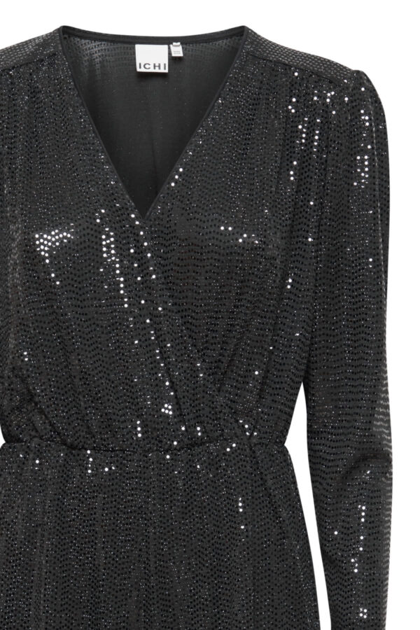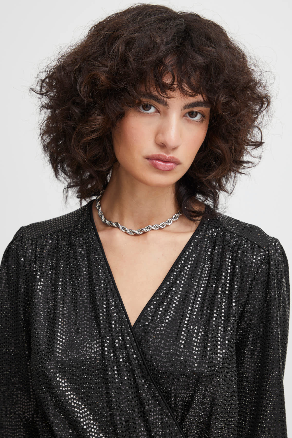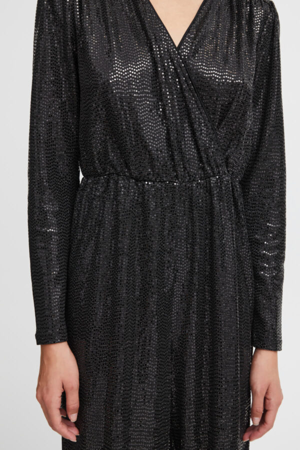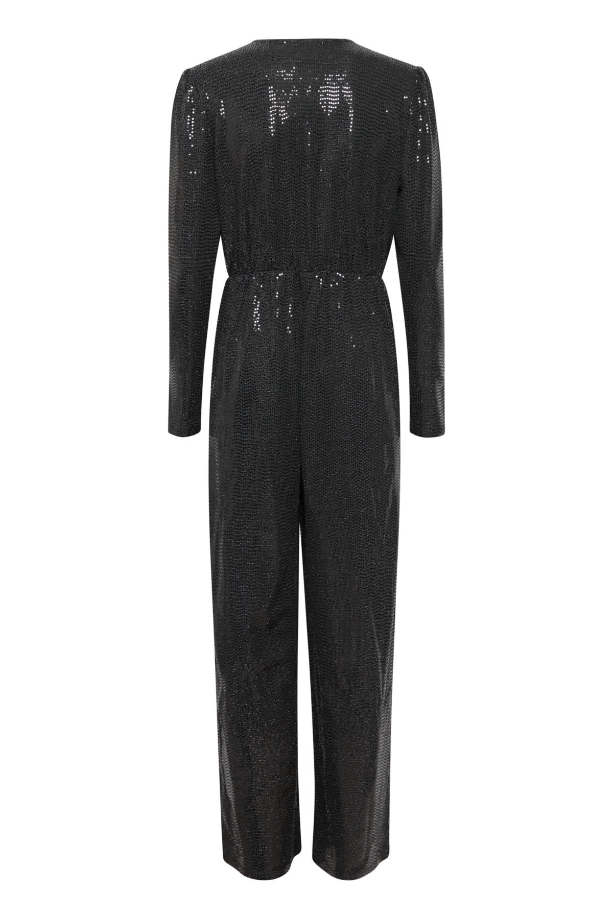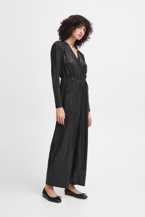 Look and feel your best self in the Loane Jumpsuit! Featuring a black wrap over style, elasticated waist and full length sleeves, this jumpsuit has a metallic finish. Pair with a stunning heal to complete your stunning look.