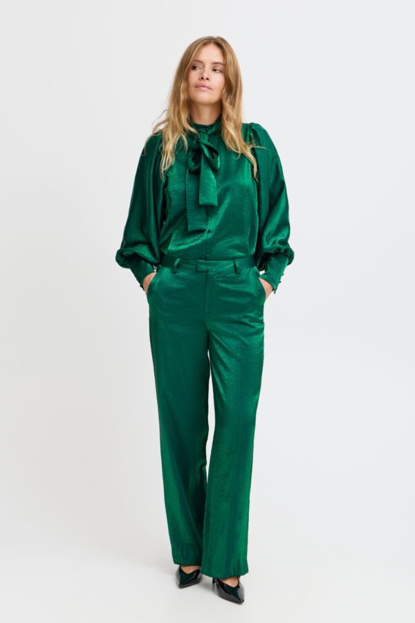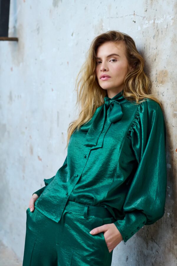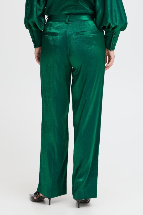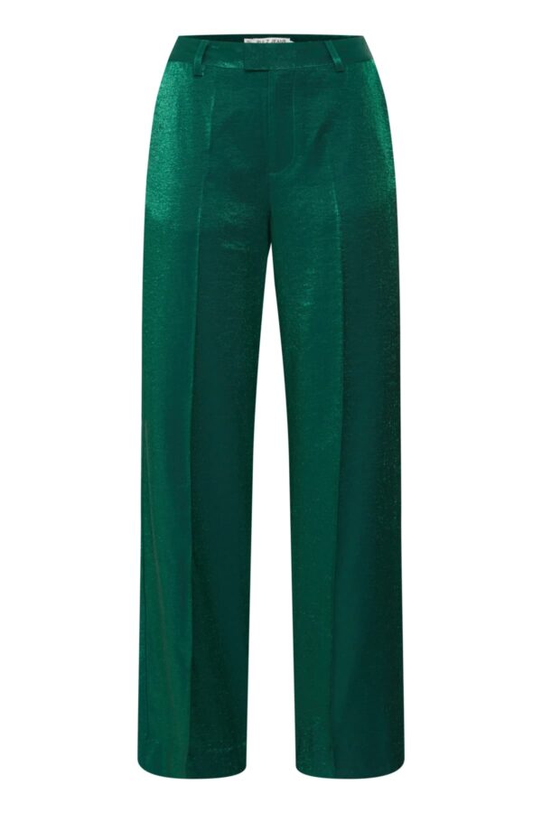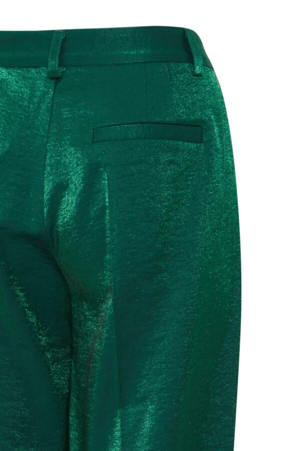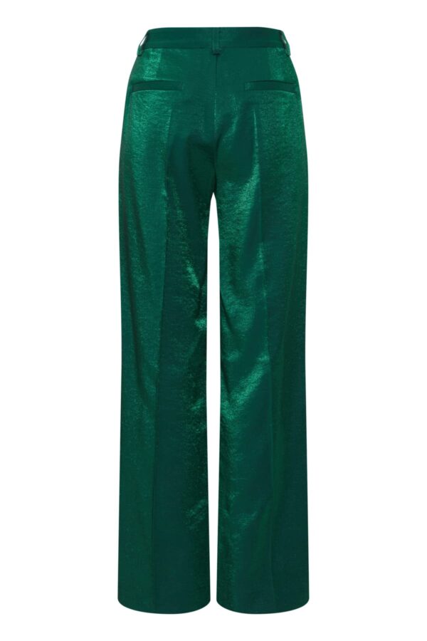 These high waisted, full length,wide leg pants are perfect for the Christmas party season ahead. They are a beautiful verdant green with a festive shimmer throughout. They feature two pockets to the front and two imitation pockets on the back. They also have a flattering crease down the centre of the legs to the front and back. There are belt loops to add a belt if desired. These pants also close with a hidden zip and hook fastener. Wear with matching Mayha Shirt Green