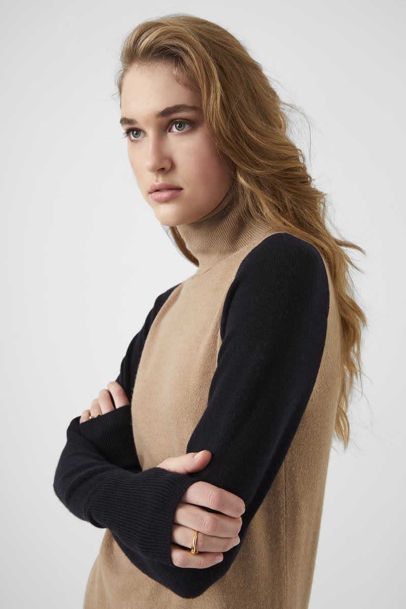 The cold won’t be able to get to you in the Millia Colour Block Vhari Jumper Dress. Not only comfortable, it’s finished with contrasting sleeves.