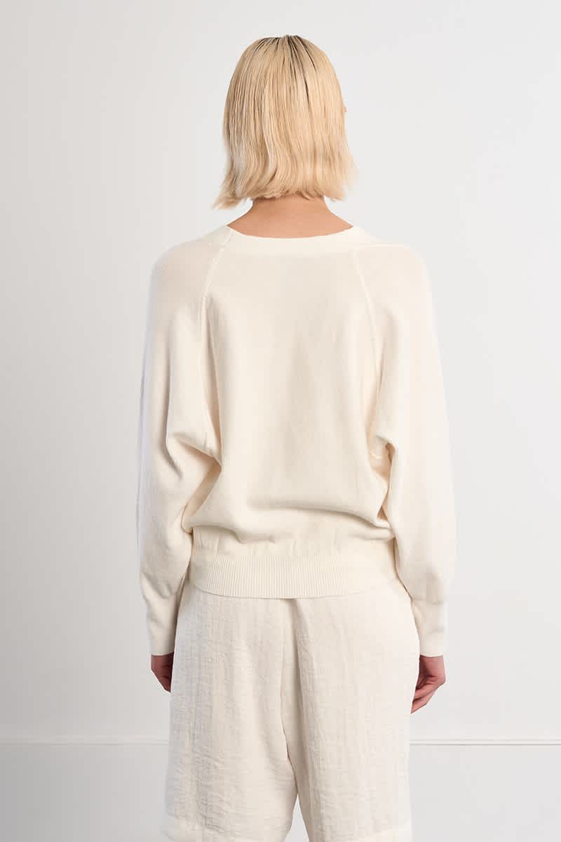 This V-neck off-white cardigan features long sleeves and a button down front. The cuffs and hem are ribbed giving a flattering shape whilst it has a relaxed fit. Style with any jeans for a perfect layer this Spring/Summer.