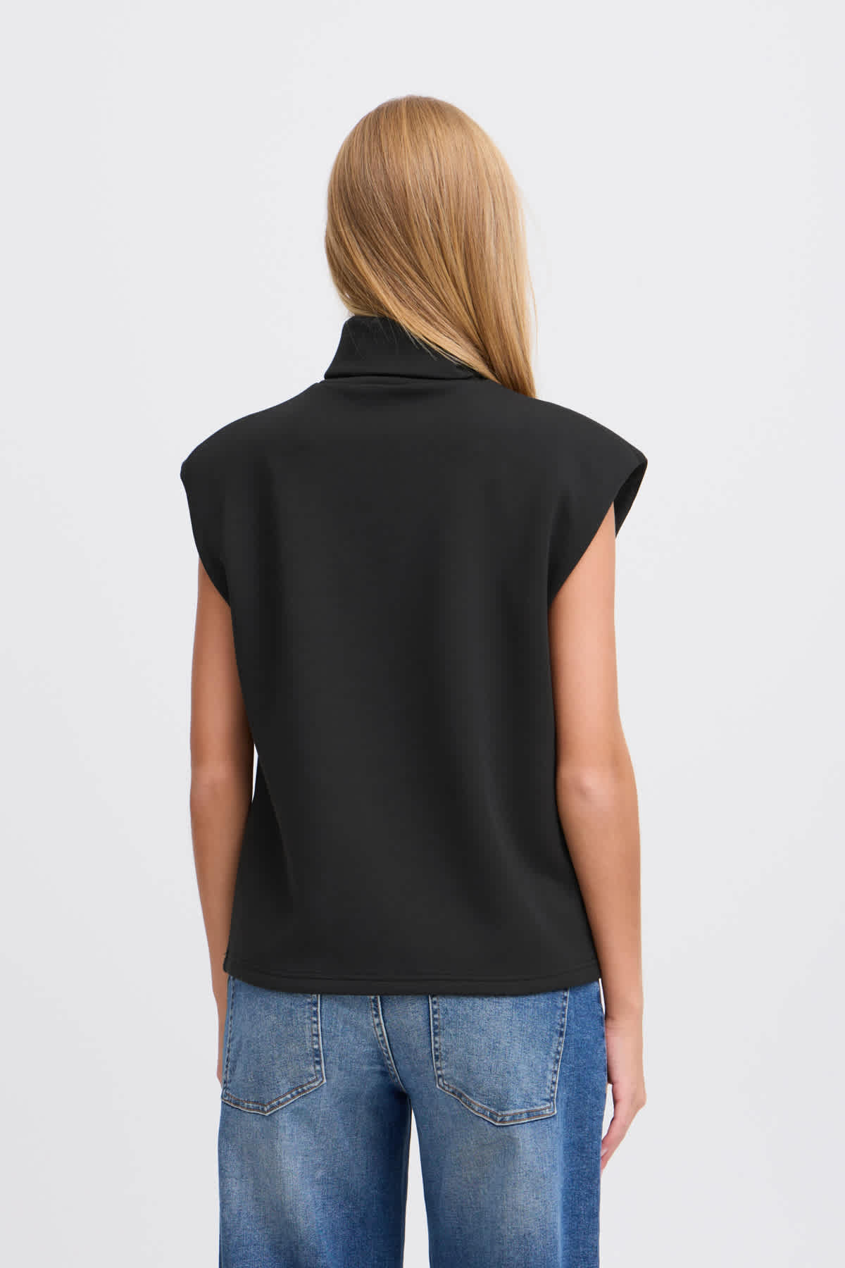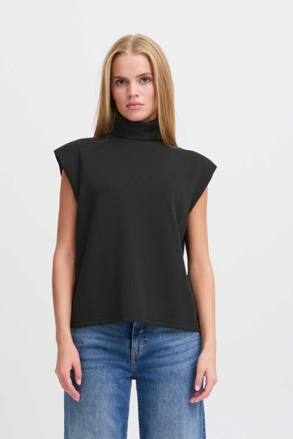 Elegant and gorgeous black high neck, sleeveless top by ICHI, in super soft black modal. Such a versatile top that can be dressed up or down and even layered.