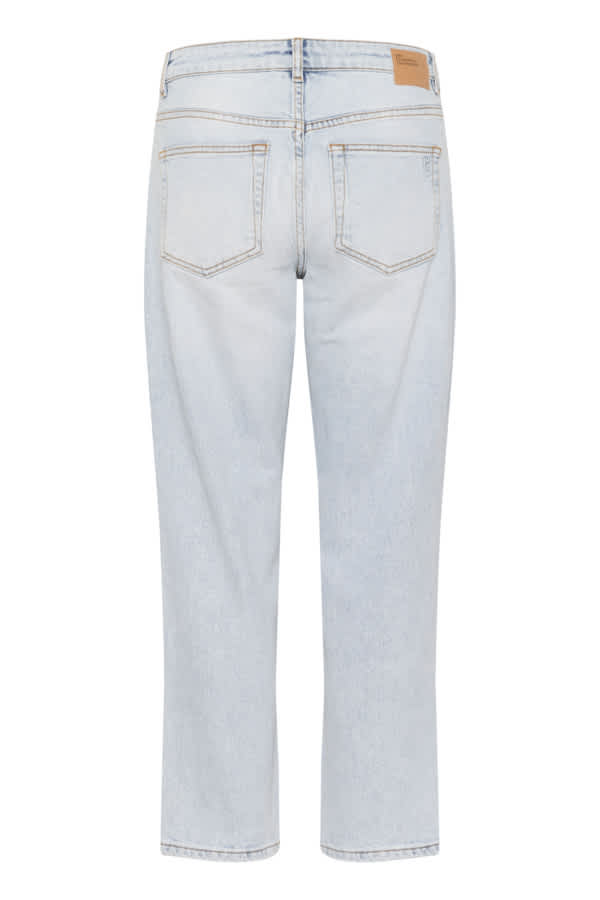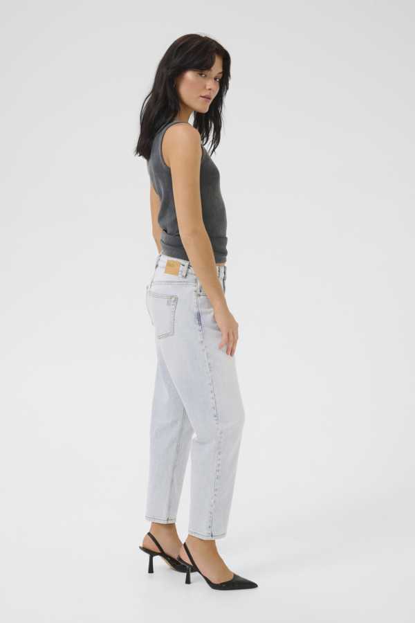 Super cool jeans from My Essential Wardrobe with tapered leg, high waist and relaxed fit. The trousers are in a light wash and have pockets both front and back, as well as belt loops at the waist.