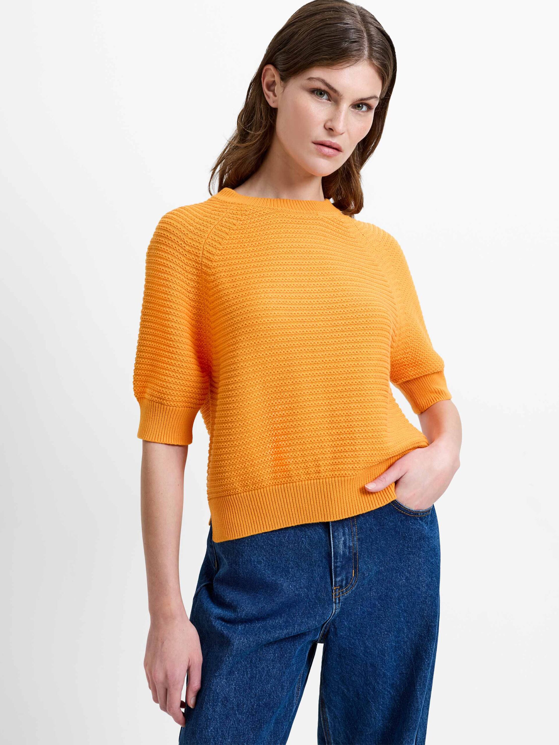 Elevate your everyday wardrobe with our Lily Mozart Purl Knit Short Sleeve Jumper, blending effortless charm with a premium feel. Crafted in a tactile purl stitch, this soft knit style features a classic crew neckline, neat short sleeves and finely ribbed trims for a polished finish.