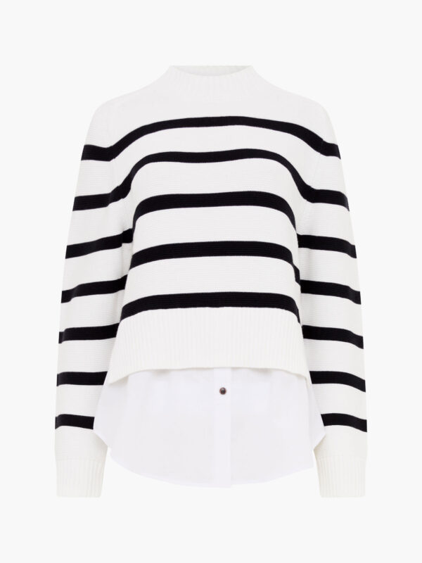 It’s no illusion that the Mozart Mix Top is a sought after style for the season. This top effortlessly channels the 2-in-1 layered trend by pairing a soft stripe knit bodice, framed by a crew neck and long sleeves, with a contrastingly complimenting poplin hem designed to give the impression of a fresh white shirt beneath. We could never say no to a grab-and-go layered look.