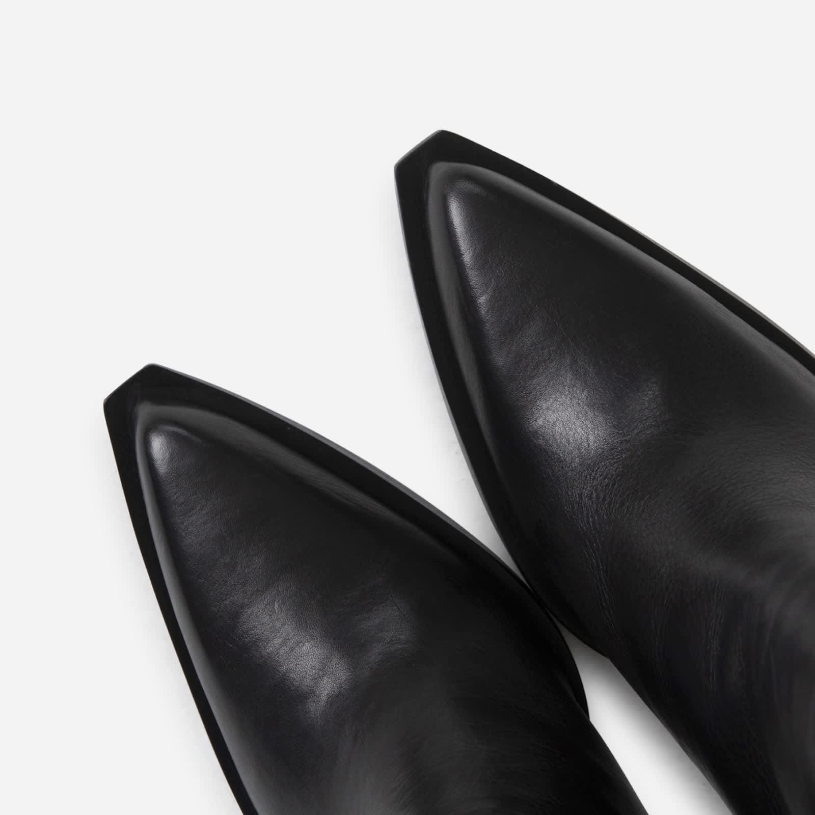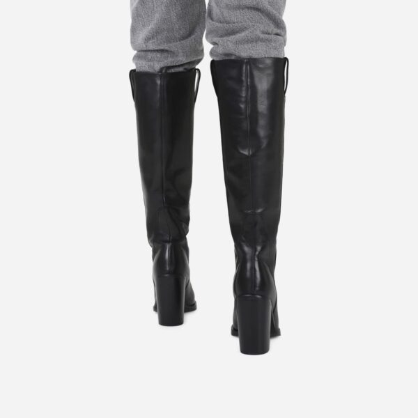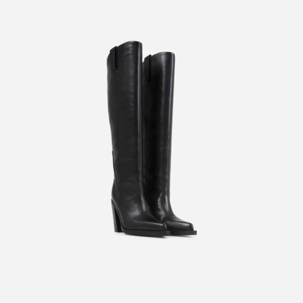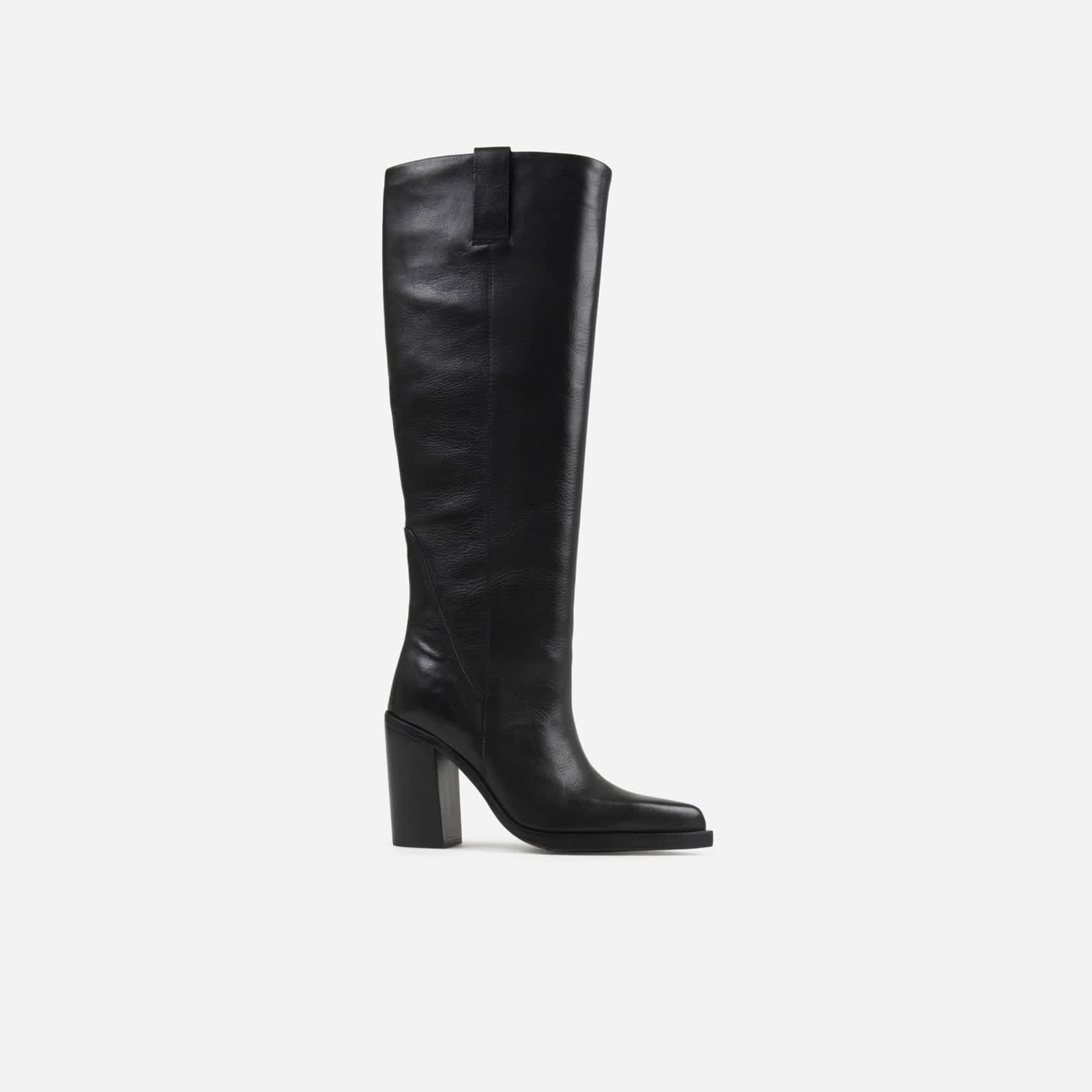 These boots are made for walking! This high boot is a real eyecatcher. The boot has a 10 cm heel and is shiny black which gives you that clean look. This boot can be a bit tighter around the calf.