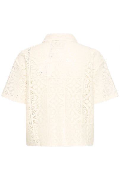 This white embroidered top features a short sleeve and a collar. The neck can be worn closed with a button and keyhole detail or open and relaxed giving a V-shape. This is a relaxed fit and is beautiful paired with matching Naima Shorts White. We love a co-ord and this is the perfect holiday outfit.