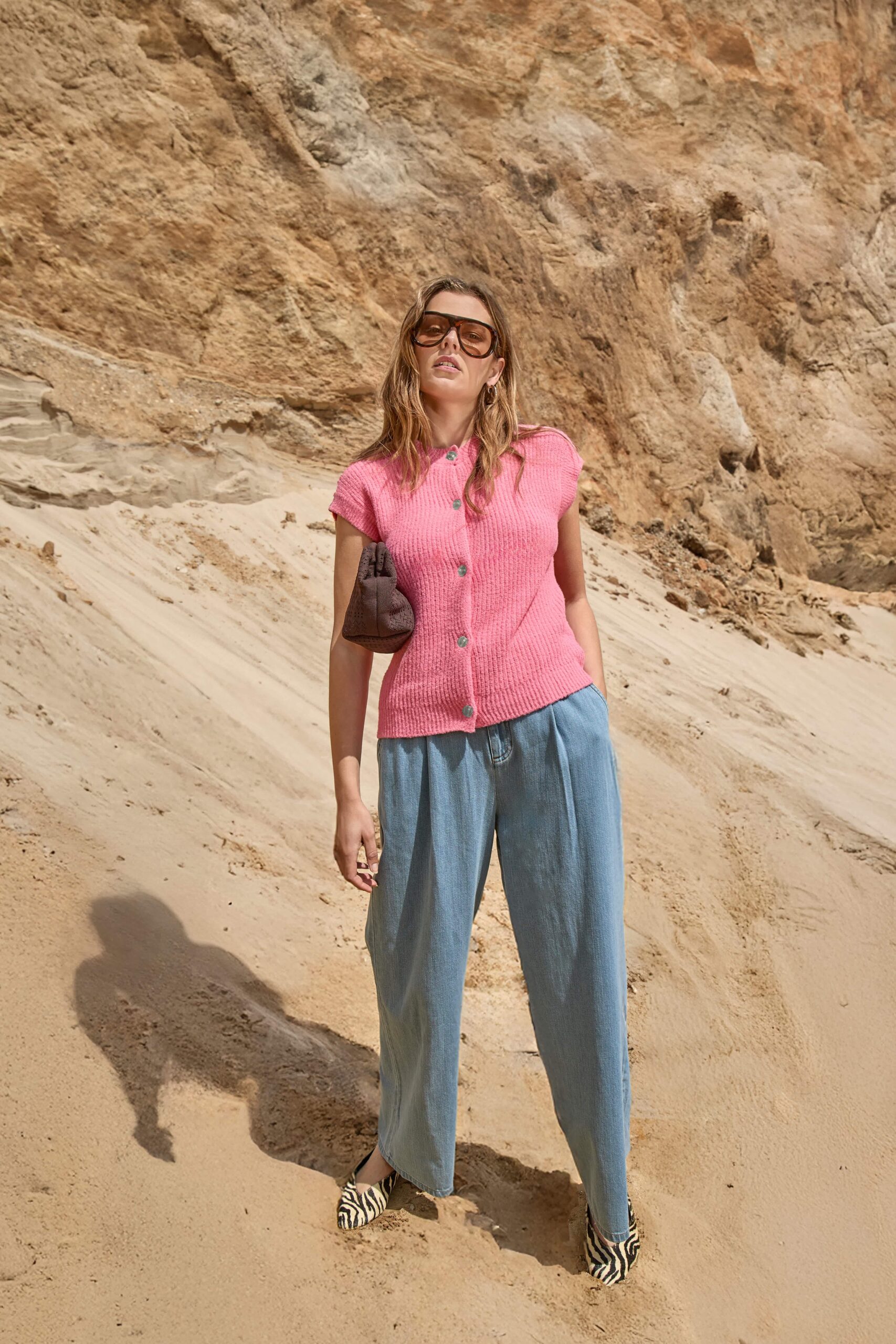 Supersoft lightweight summer knit with borgeous gold button closure detail. Wear with just about anything for instant brightness,fun & style.