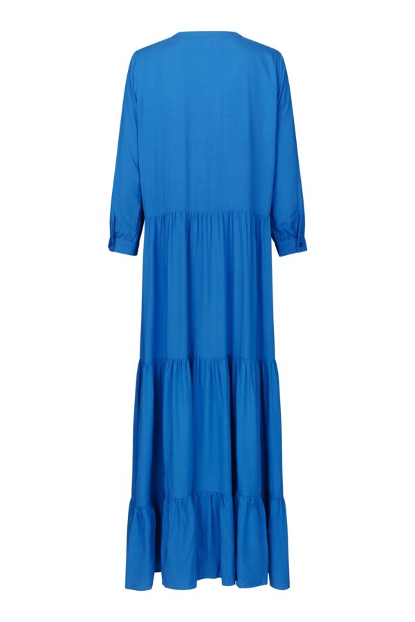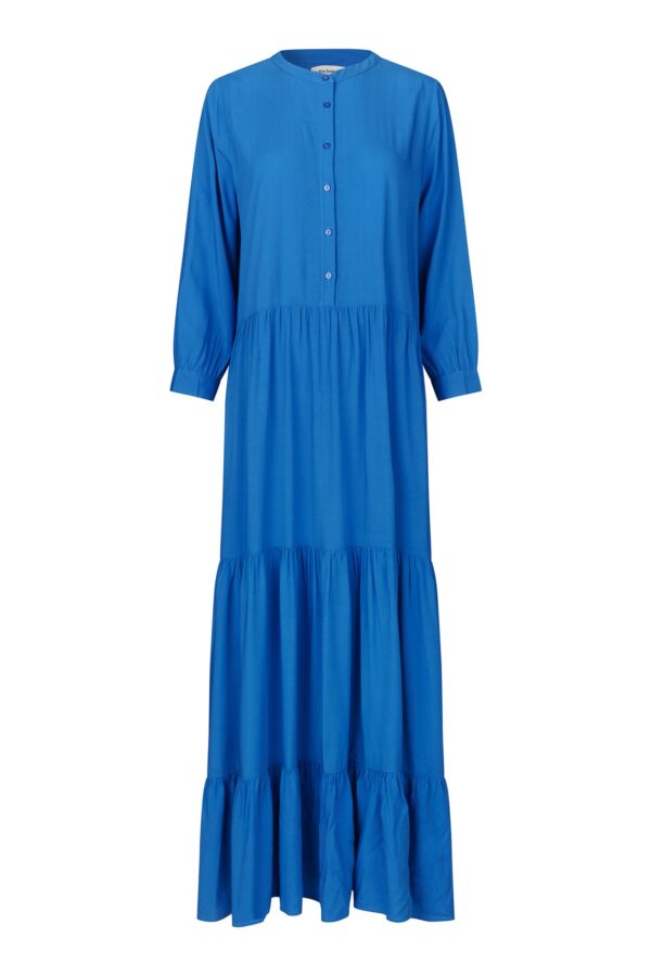 The Nee Dress is a long and feminine favorite from Lollys Laundry. Its design is timeless, making it an excellent choice for various occasions. It features a classic round neckline and long sleeves, with a button-closed front extending down to the waist. The fit of the dress is regular, maintaining a graceful silhouette. The dress’s maxi skirt has 3 panels that add volume and movement, making it a statement piece for any event. It can easily be dressed up with high heels and statement jewelry or down with flat sandals for a more relaxed look.