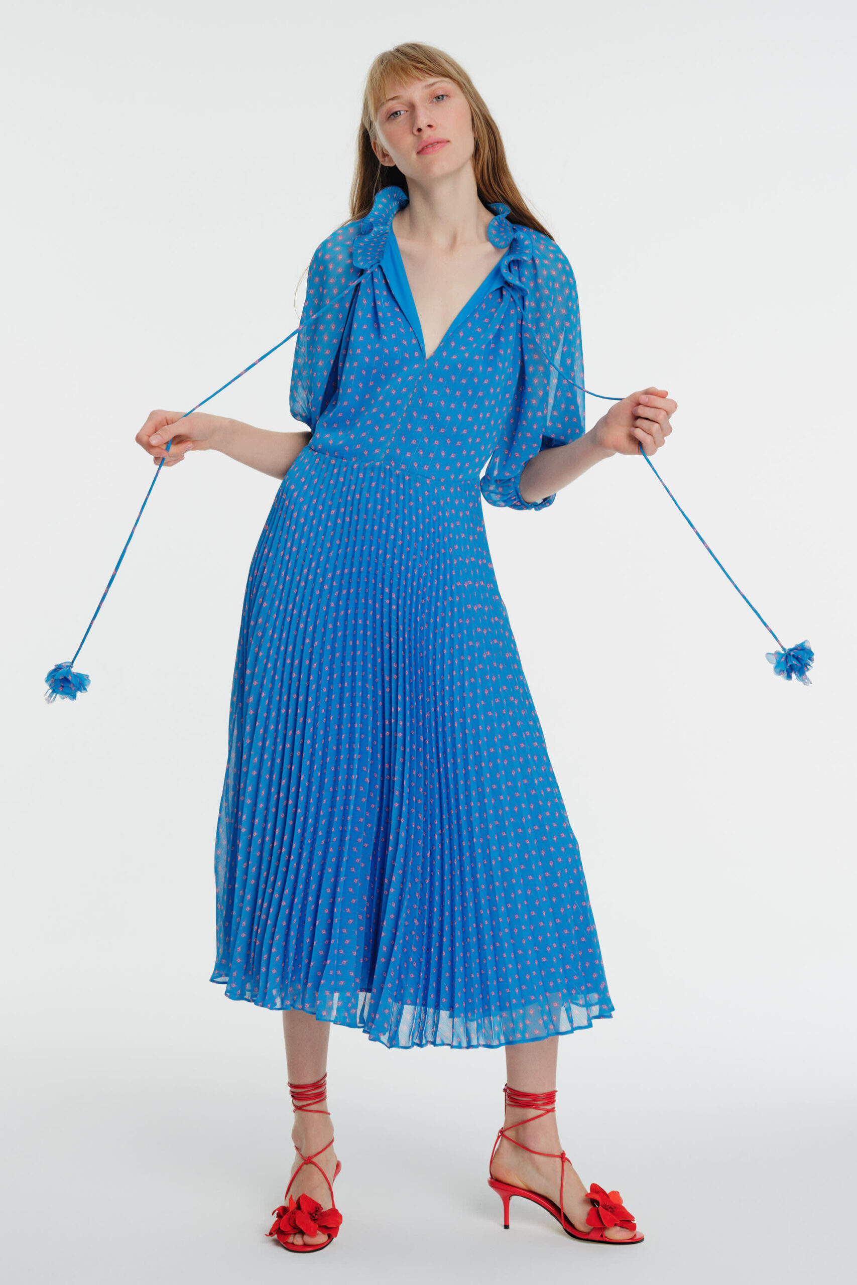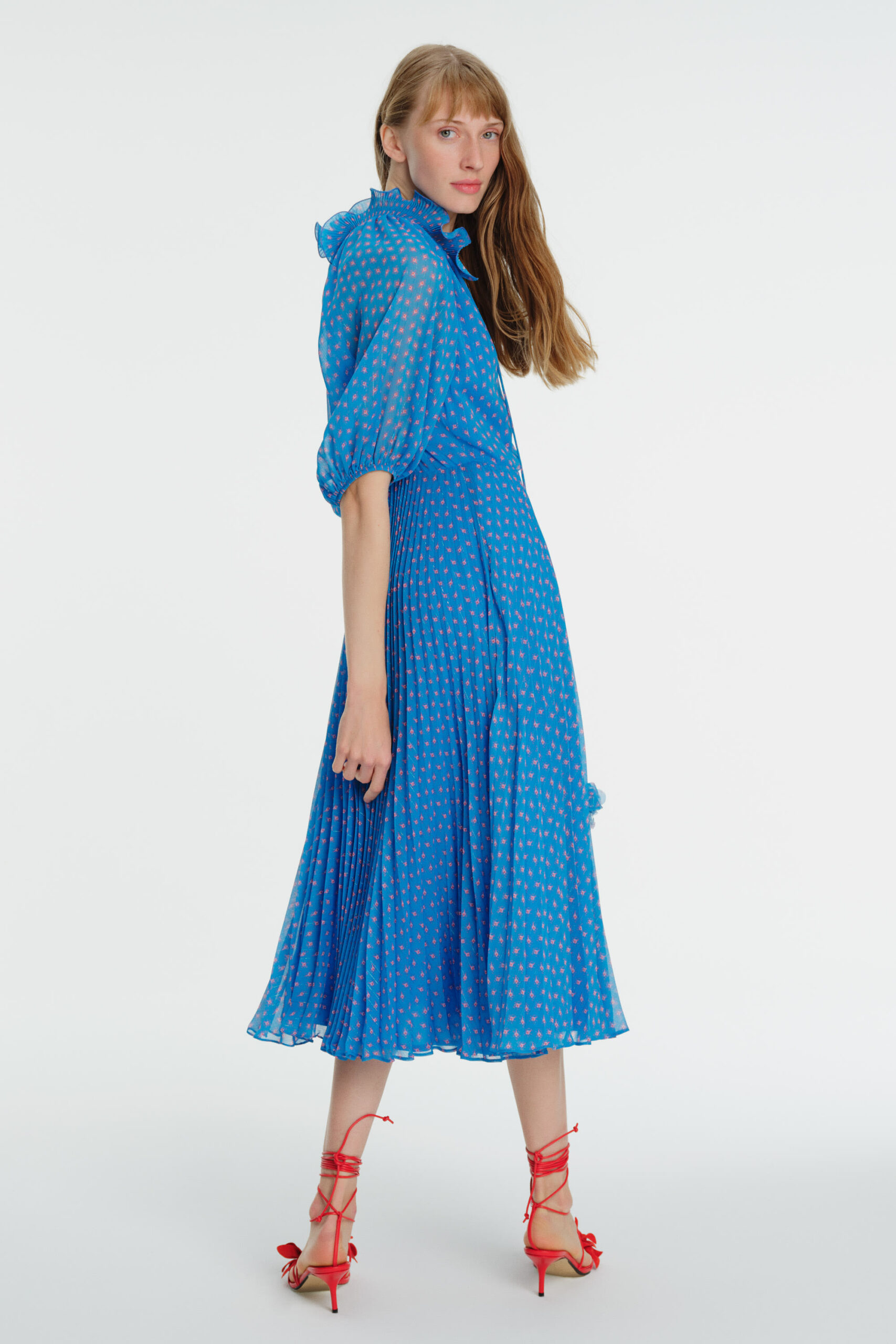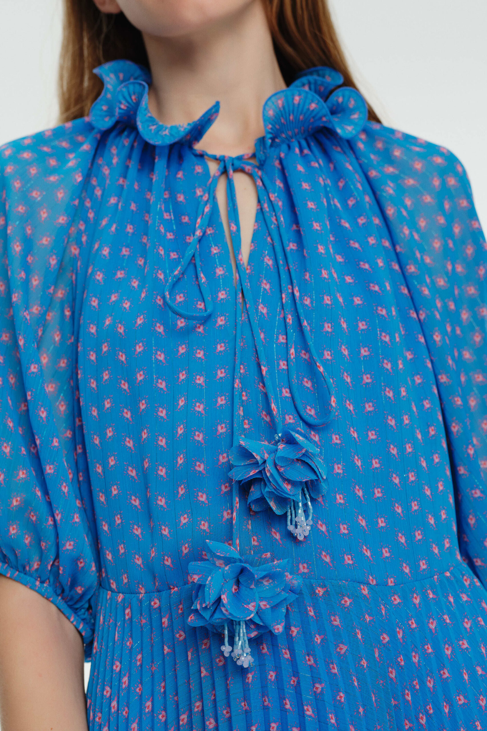 We adore the sheer sleeve detail and intricate neck frill.