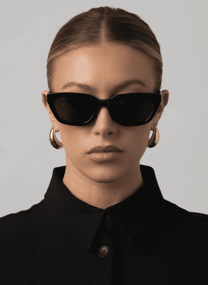 The NOVE Cat Eye Sunglasses in all-black are a minimalist staple with maximum impact. Featuring a sharp, sculptural cat eye shape, this monochrome style delivers understated edge with just the right amount of attitude. The sleek black frame is paired with matching black lenses for a clean, modern look that pairs effortlessly with anything in your wardrobe.