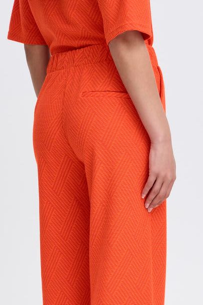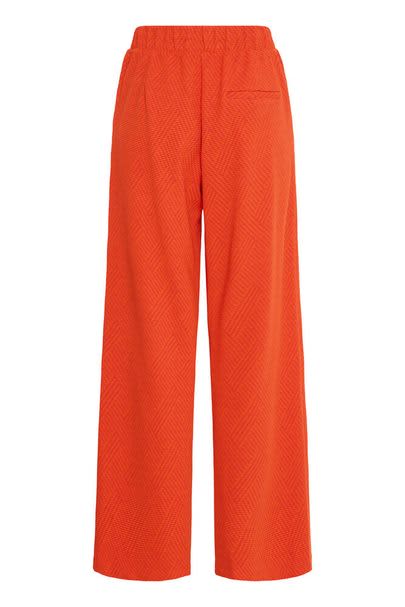 Make a statement in these burnt orange jaquard pants. They feature an elasticated waist and a wide leg with pockets at the hips. They also feature a piped pocket on the backside making these very flattering to wear. These are very soft with a nice stretch to the fabric. Style with matching Obia Jaquard Top Burnt Orange.