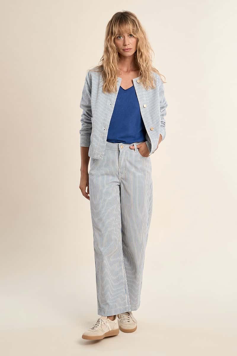 Striped jacket, Long sleeves, buttoned cuffs, Round neckline,Patch and topstitched pockets.