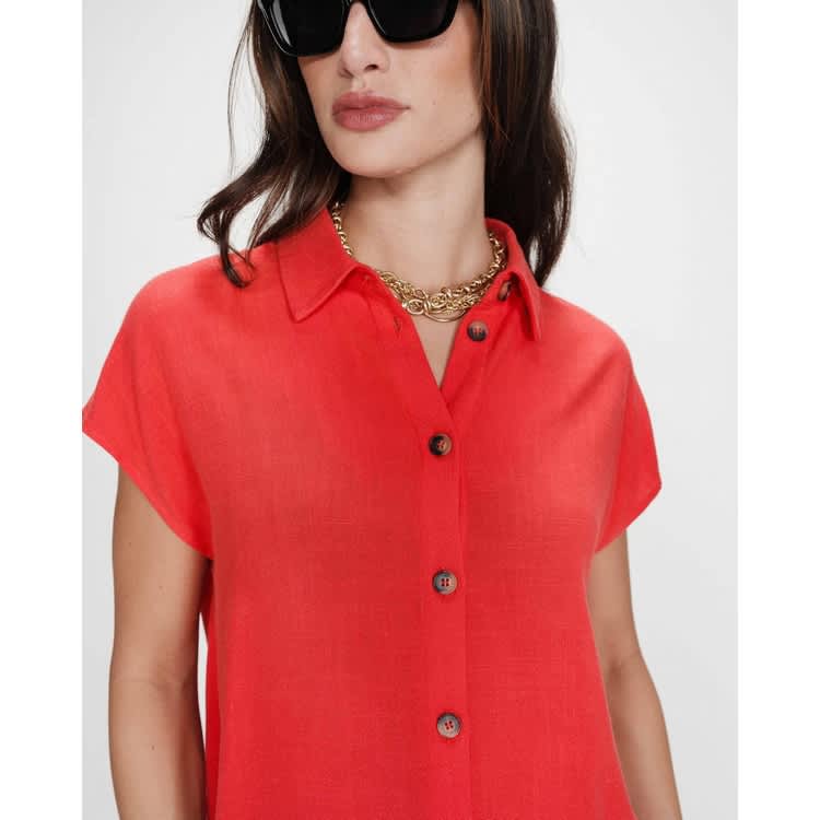 Bright and sunny orange shirt with button down front. Worn perfectly with the co-ordinating Raven Drawstring Pant Orange