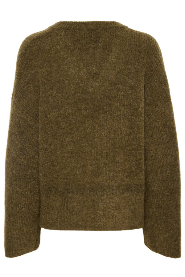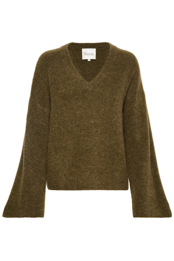 A gorgeous option for this autumn winter. Neutral green toned v neck wool mix jumper. Great choice for over jeans or skirts. Layer with a gilet for the school run.