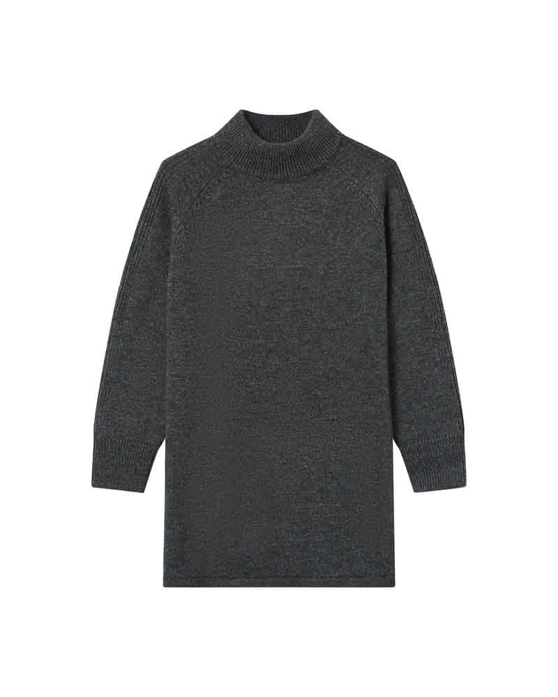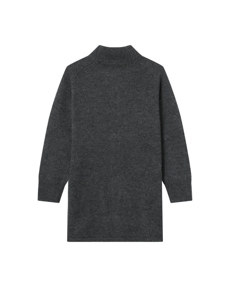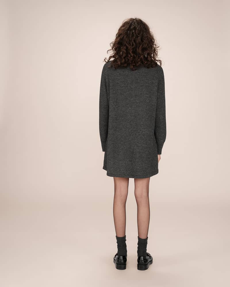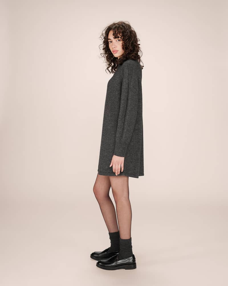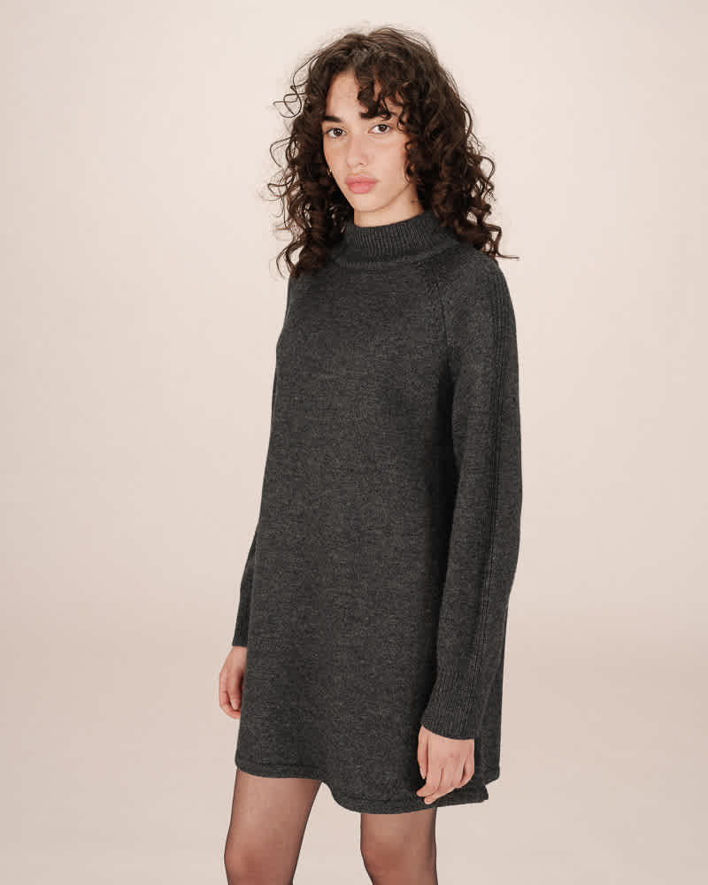 This short wool blend jumper dress in anthracite is warm and comfortable making this a perfect addition to your Winter wardrobe. Its timeless A-line cut and high neck evoke a revisited retro style, while the raglan sleeves and knit detailing add a modern touch.This is a must-have piece for creating a chic and relaxed silhouette. Wear with tights and boots.