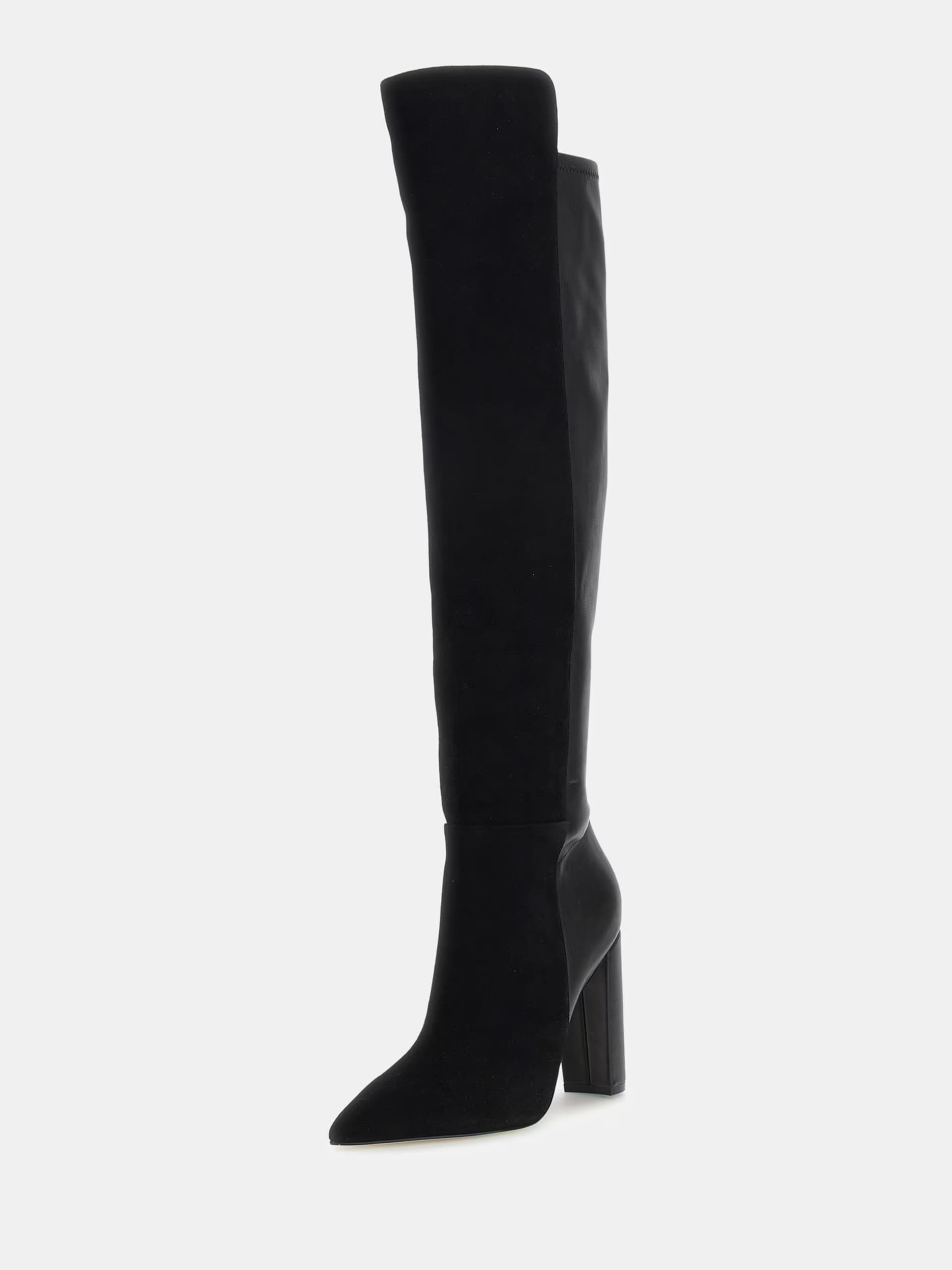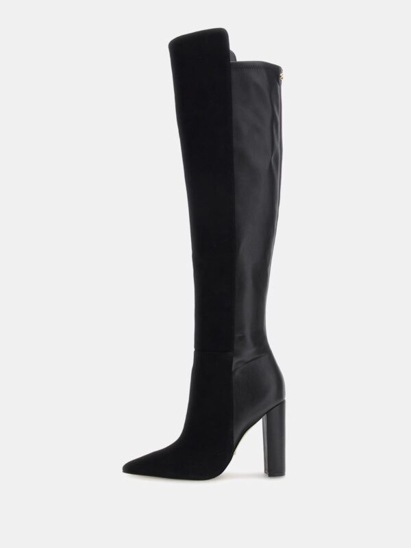 Over the knee faux suede & leather boots. Pointed-toe.