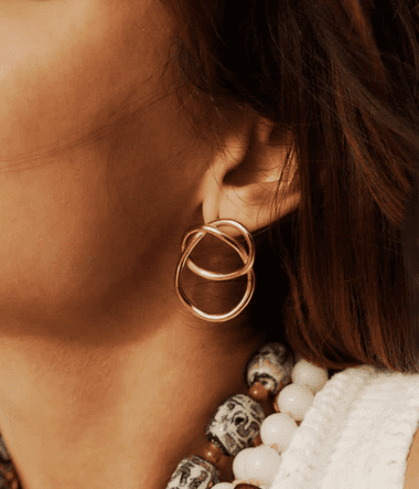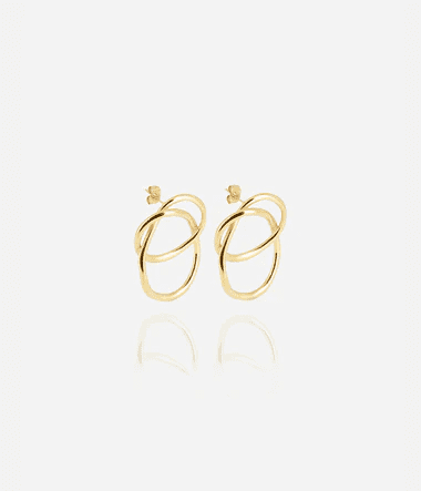 Earrings in plain or gold-plated steel. They are made up of 2 interlocking rounded shapes.