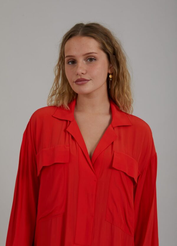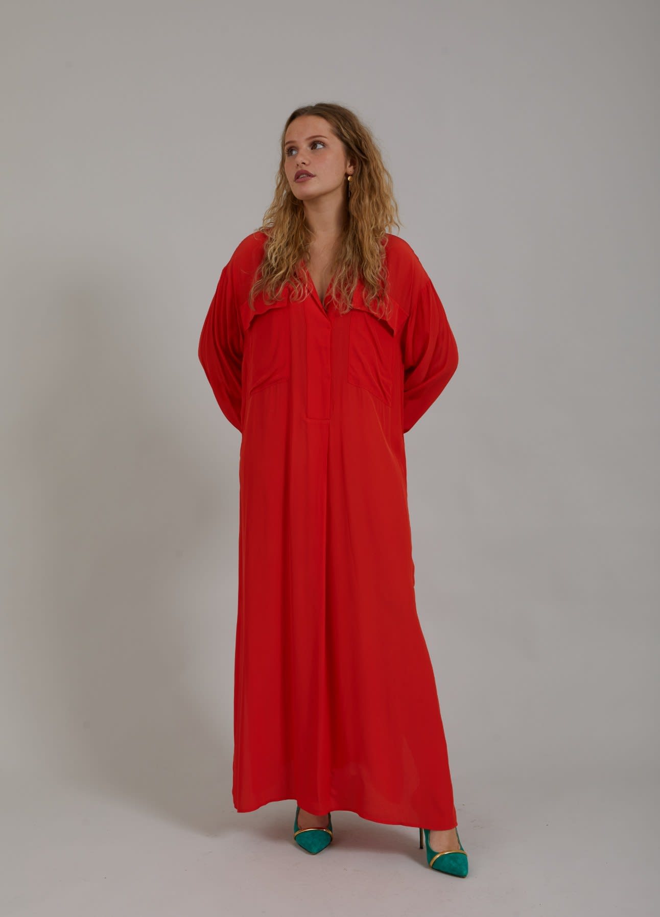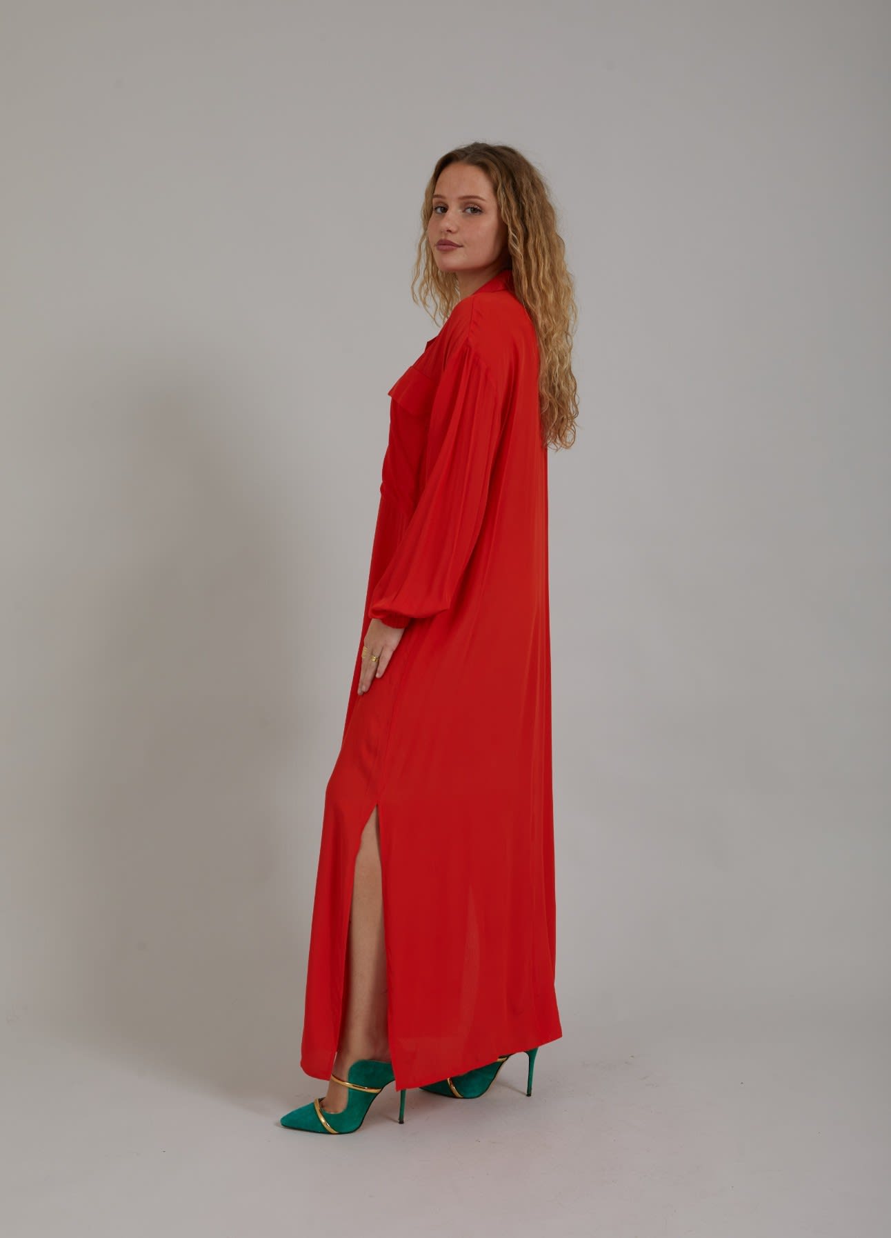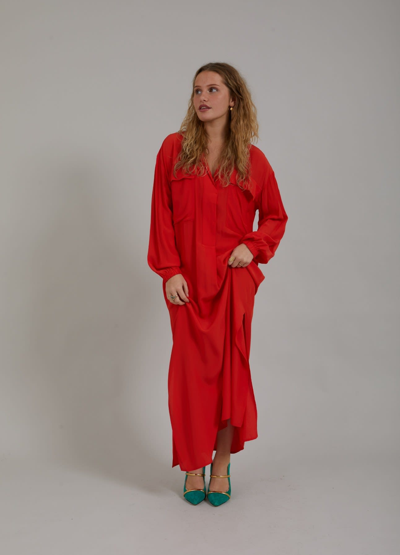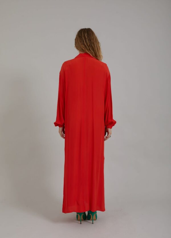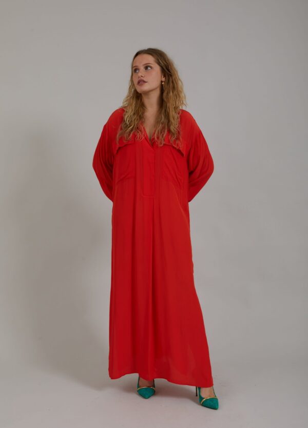 Long shirt dress with classic shirt collar, breast pockets and maxi length. Great for a party or style it for your everyday life!