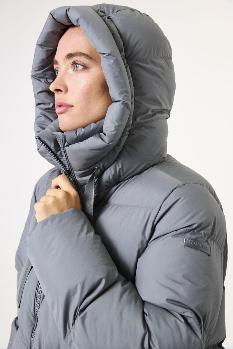 The Garcia coat fits perfectly into the current trend of oversized outerwear. The grey/green hue is elegant and pairs well with both casual and chic outfits.