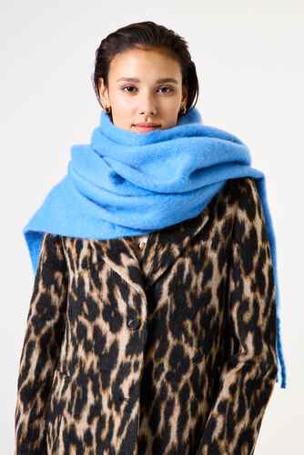 Stylish scarf in a fresh blue shade. This scarf has a generous size and can be worn in various ways. This item is made of 100% polyester, which provides a soft and comfortable feel.
