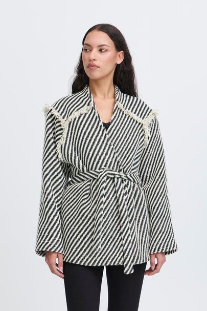 Loose Fitting Wrap style kimono jacket. Soft weave monochrome fabric.