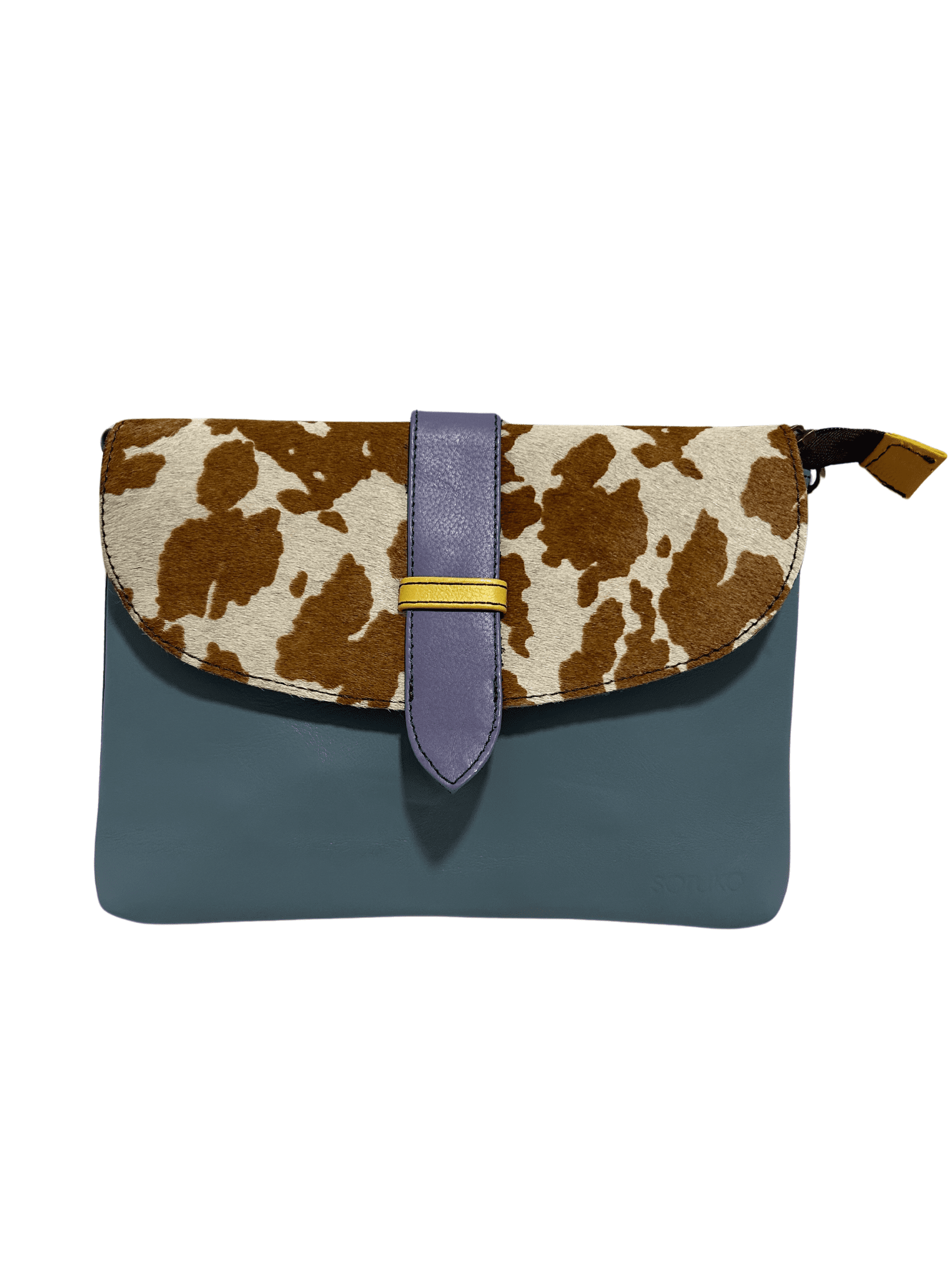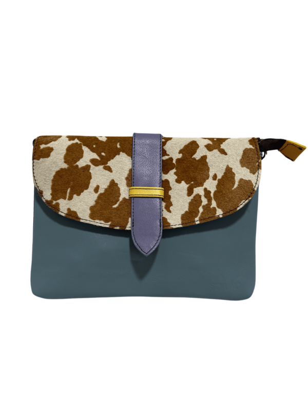 These leather bags are one-of-a-kind pieces created, designed and manufatured by hnad using discarted (leftover) or no-longer in use leather, in order to reduce the ecological impact of traditional leather production. This saddle bag style comes with contrasting colour straps on the front, a wrist strap, a shoulder strap and a zip pocket to the back. (Note: colours of straps may vary throughout. See below)
