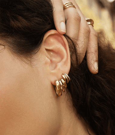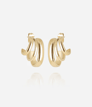 Plain steel or ionized gold-plated earrings formed of 3 rings side by side giving a cascading effect.