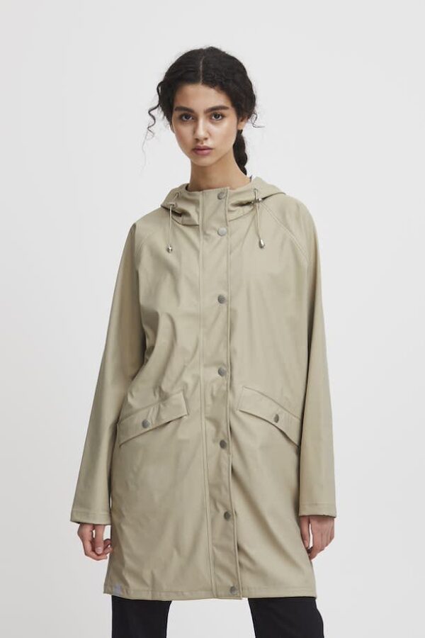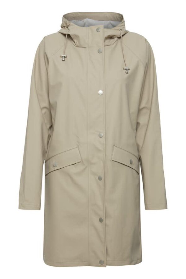 Light hooded waterproof raincoat. Waterproof with front zip and button fastening.