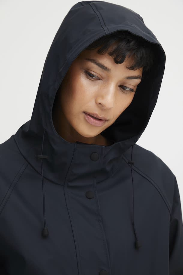 Light hooded waterproof raincoat. Waterproof with front zip and button fastening.