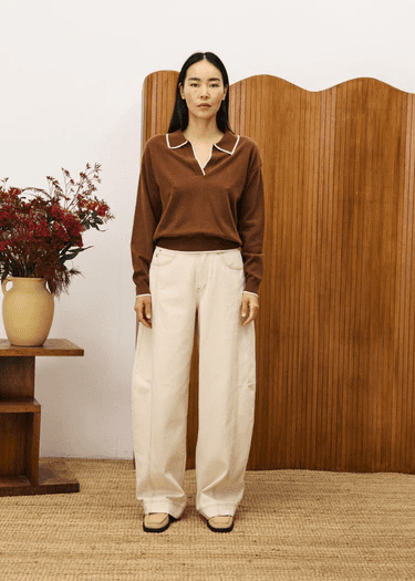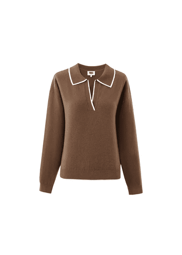 Gorgeously soft long sleeve knit with collar and cream detail.