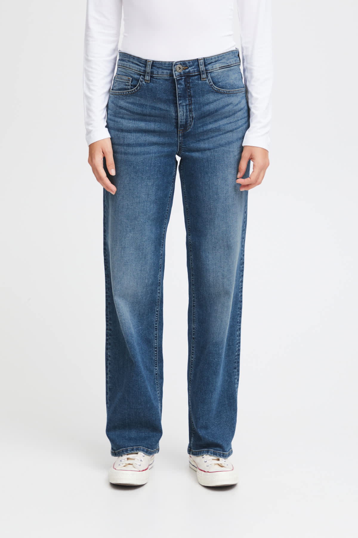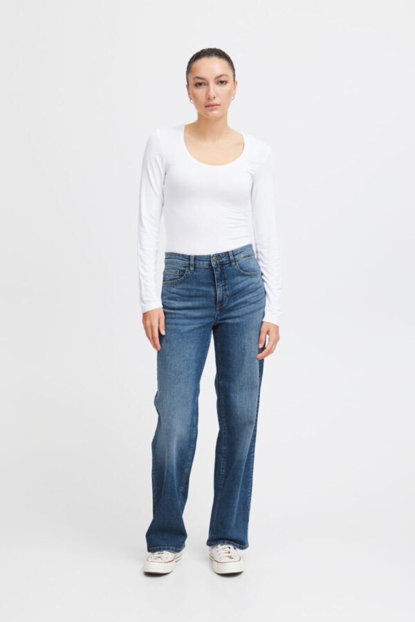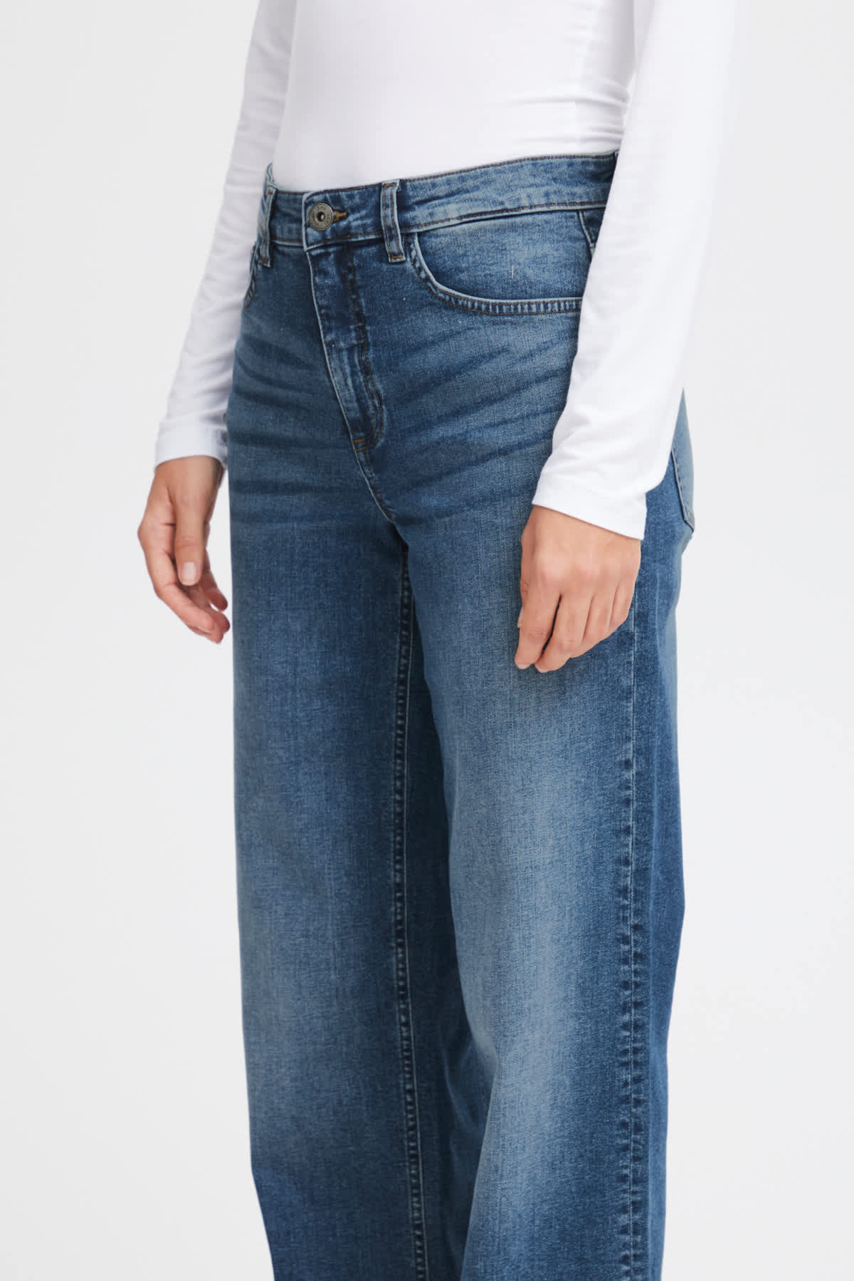 Ichi Twiggy Raven Denim Jeans now in a 32 leg! A straight fitting, high waisted pair of mid blue denim jeans with 5 pockets and a button and zip fastening.