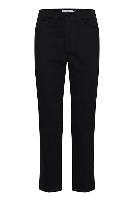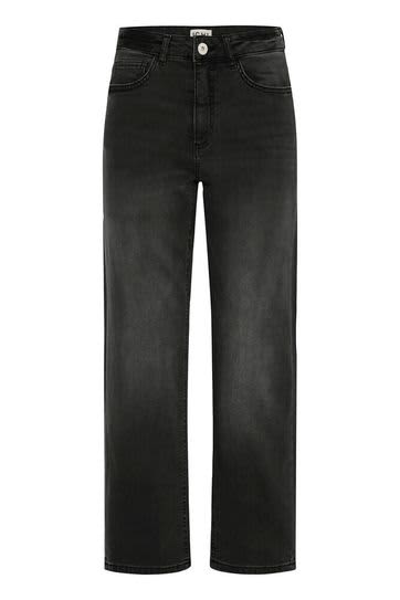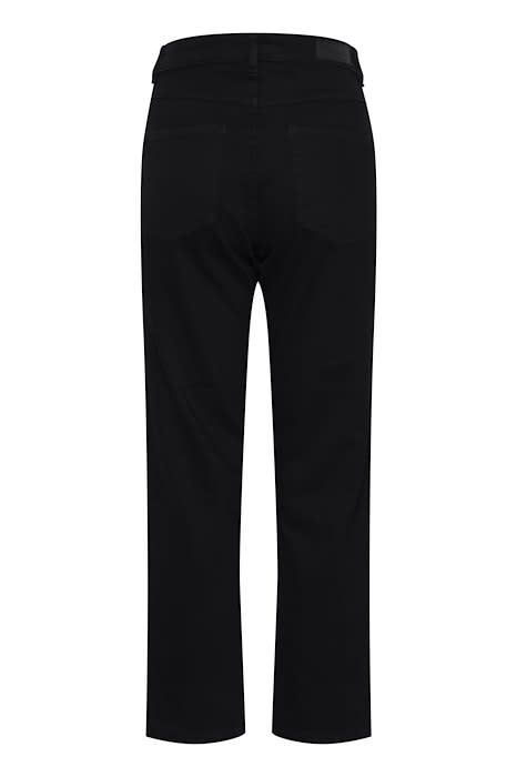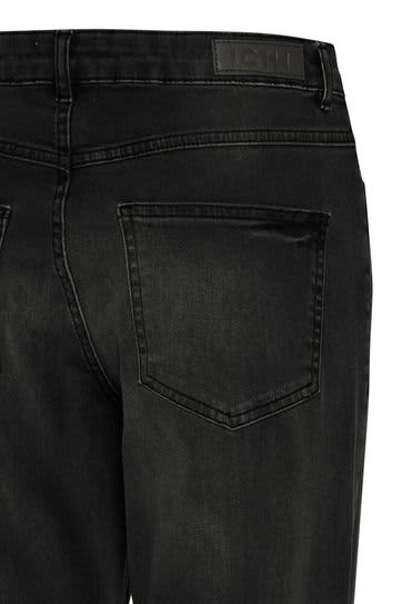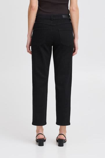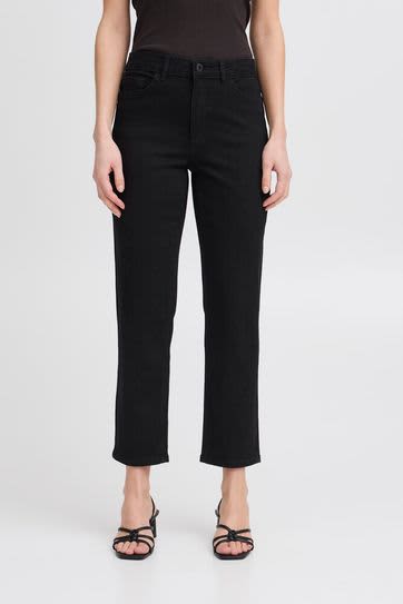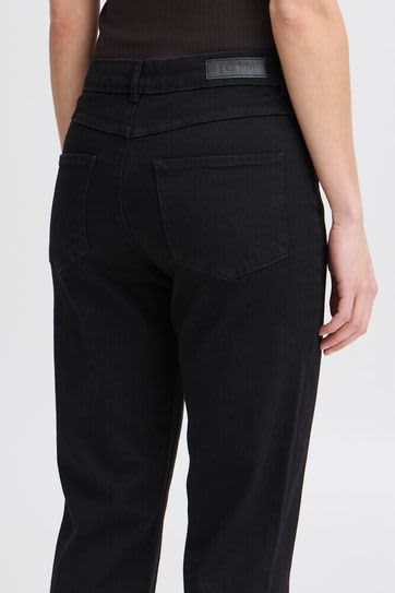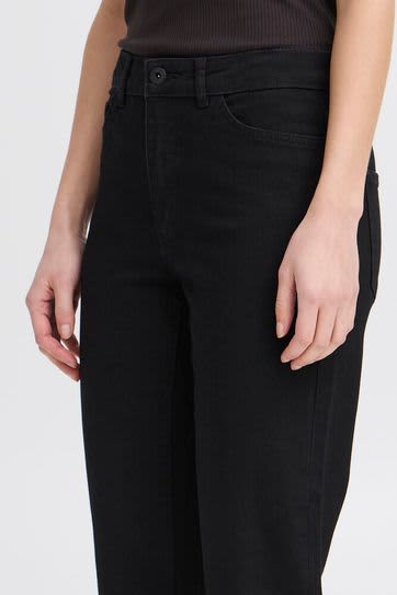 Ichi Twiggy Raven Denim Jeans, a straight fitting, high waisted pair of black denim jeans with 5 pockets and a button and zip fastening.