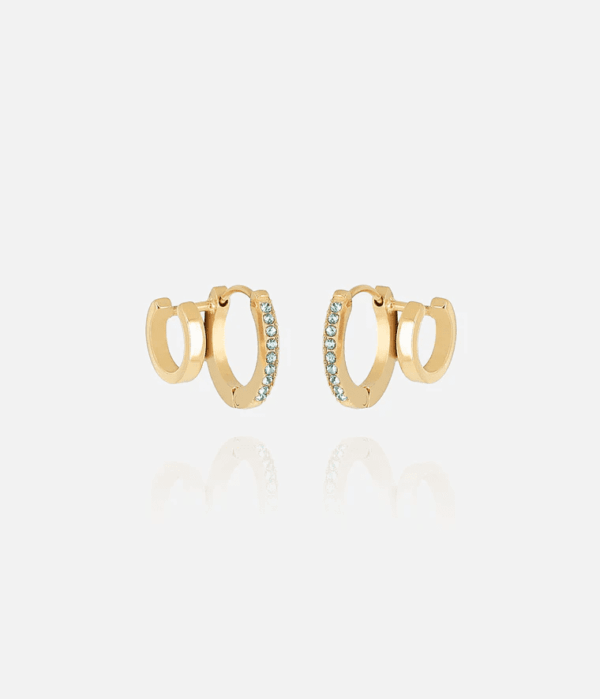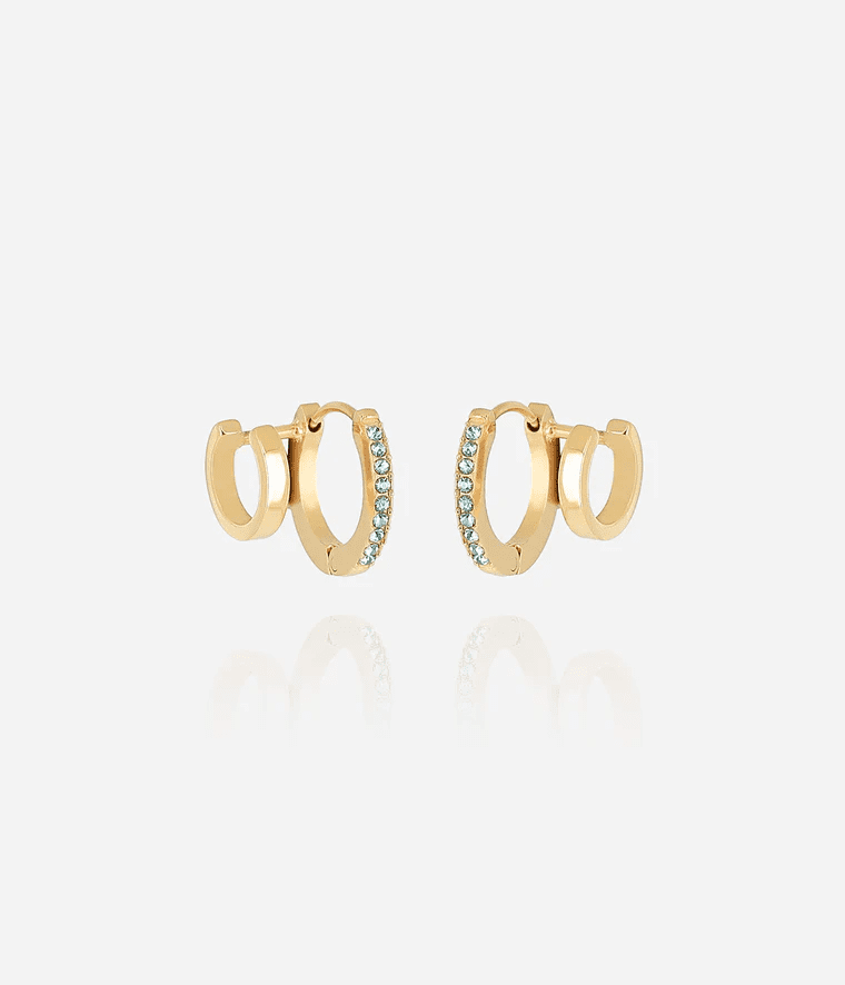 Stud earrings gold-plated with fine gold, consisting of 2 rings of different sizes creating a stacking effect! One of the rings is set with soft blue zirconiums.