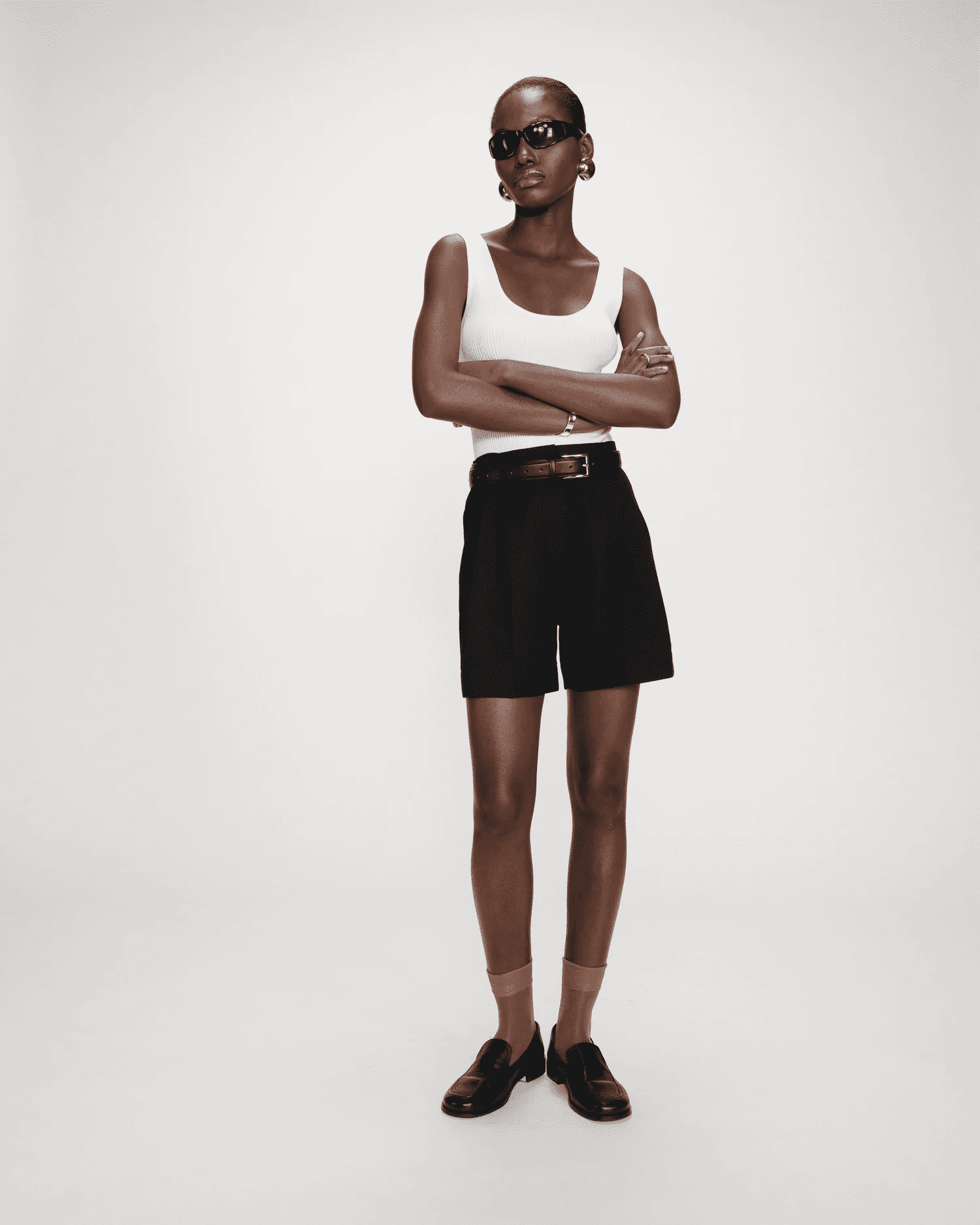 The Vite tailored shorts feature a straight cut, blending structure and ultra comfort.