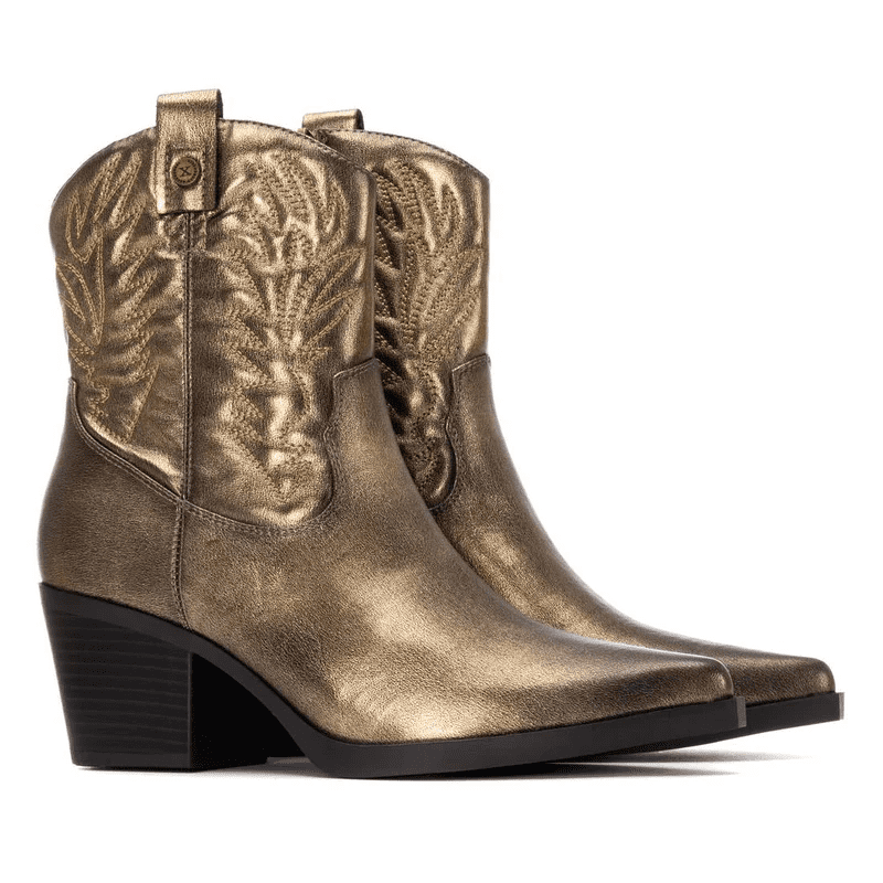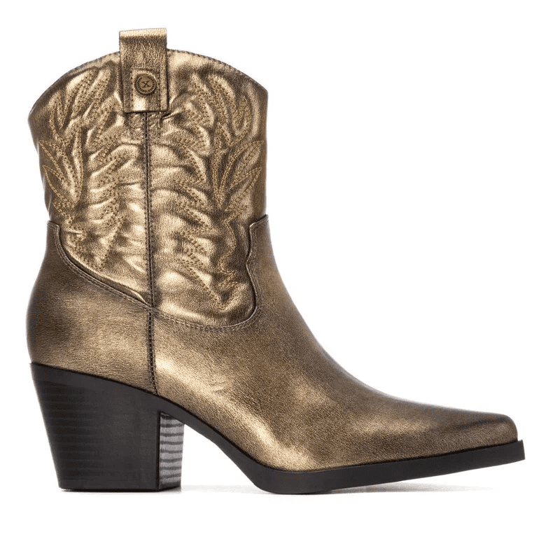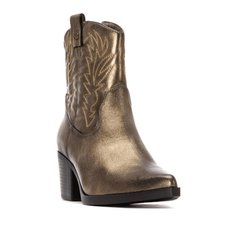 Classic vegan leather winter boot providing comfort & style! Side zipper closure. Ankle boot cowboy style in a unique gold tone.  Non-slip sole.