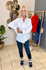 This week we are bringing it back to basics. Mary has selected some fab cotton, breathable summer classics. From striped cotton  tees, colourful cotton shirts with jeans and comfy summer dresses. Perfect summer day attire for this unpredictable weather.